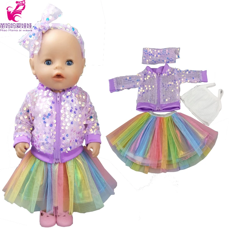Кукольная одежда для 17 дюймов, детская кукольная куртка с блестками, аксессуары для 18 дюймов, модная кукольная куртка для девочек, Camisoles, радужные юбки