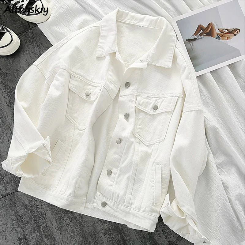 Базовые куртки, женские, однотонные, джинсовые, свободные, в Корейском стиле, на каждый день, модные, новые, Осенние, универсальные, верхняя одежда, пальто