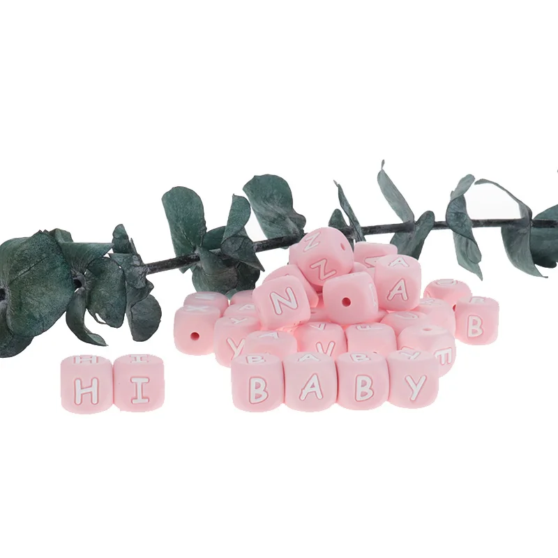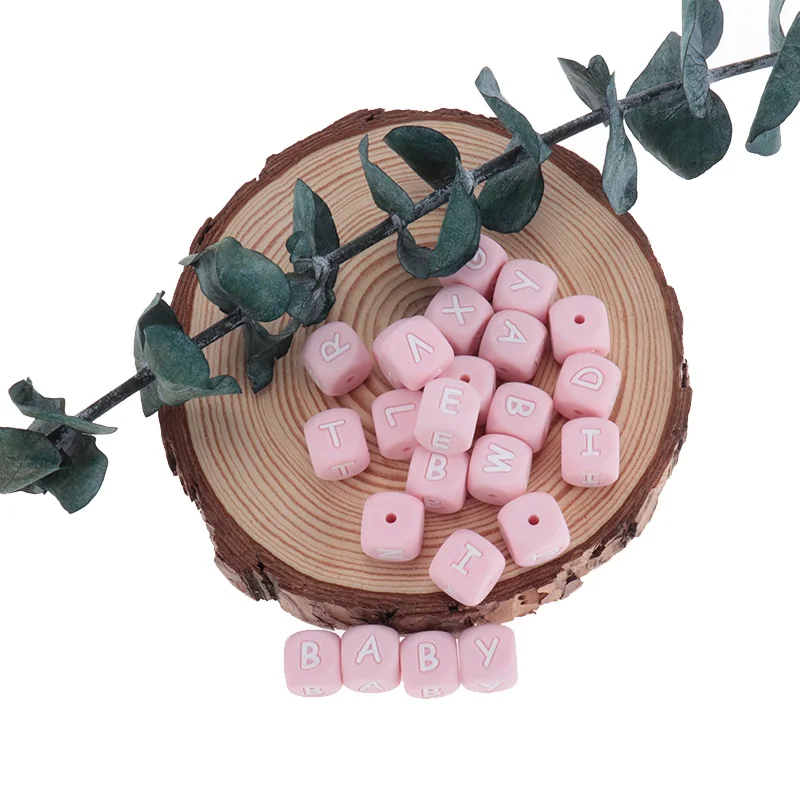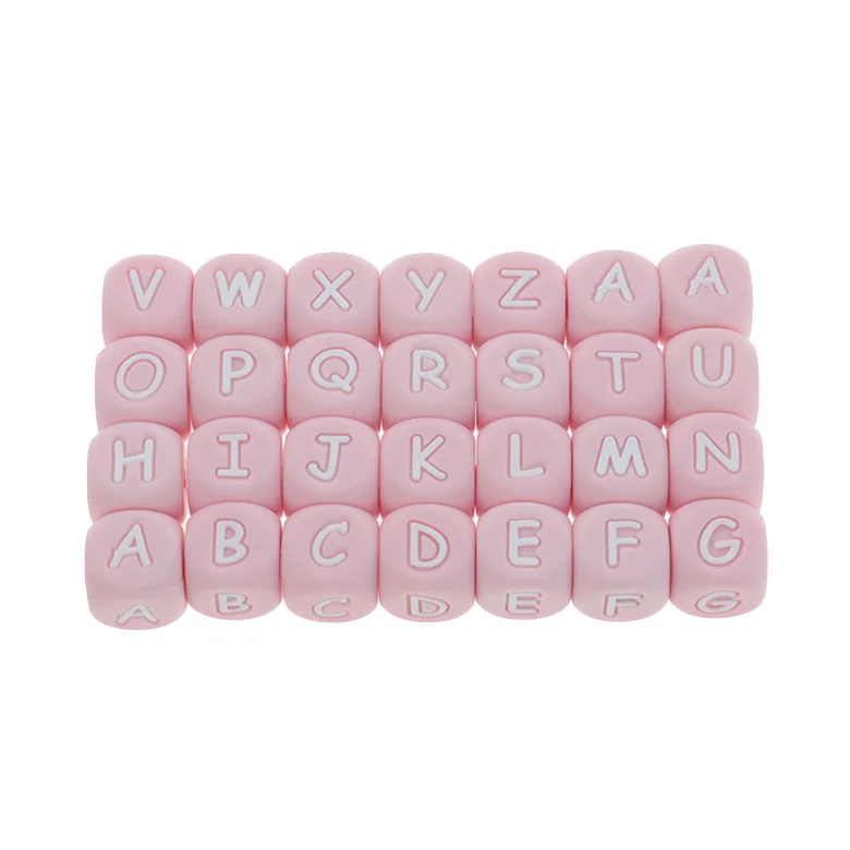 200 шт., 12 мм, светильник, Розовый Алфавит, силиконовая буква, английский язык, Детские Прорезыватели, бусины, BPA бесплатно, для новорожденных, прорезыватель, аксессуары для соски
