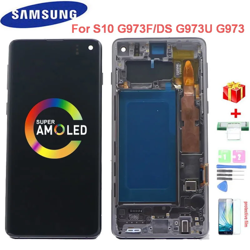 ЖК-дисплей AMOLED 6,1 'для Samsung Galaxy S10G973G973FDS SM-G973, дигитайзер сенсорного экрана с битыми пикселями, оригинал