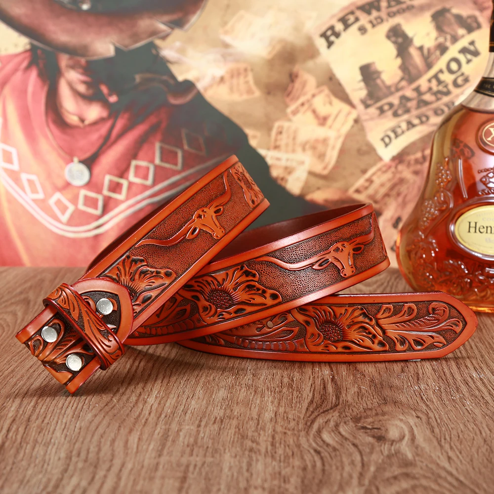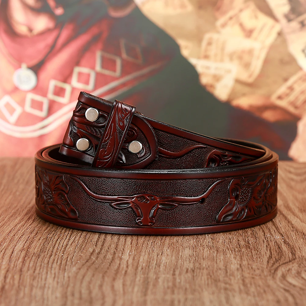 Ковбойский мужской кожаный оригинальный кожаный ремень в стиле ретро