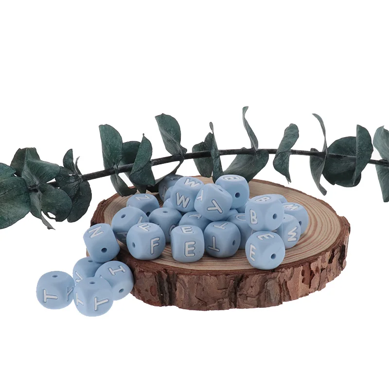 12 мм 100 шт. пастельный синий Алфавит силиконовые буквы жемчуг Детские Прорезыватели бисер без бисфенола А Единорог новорожденный соска цепочка аксессуары