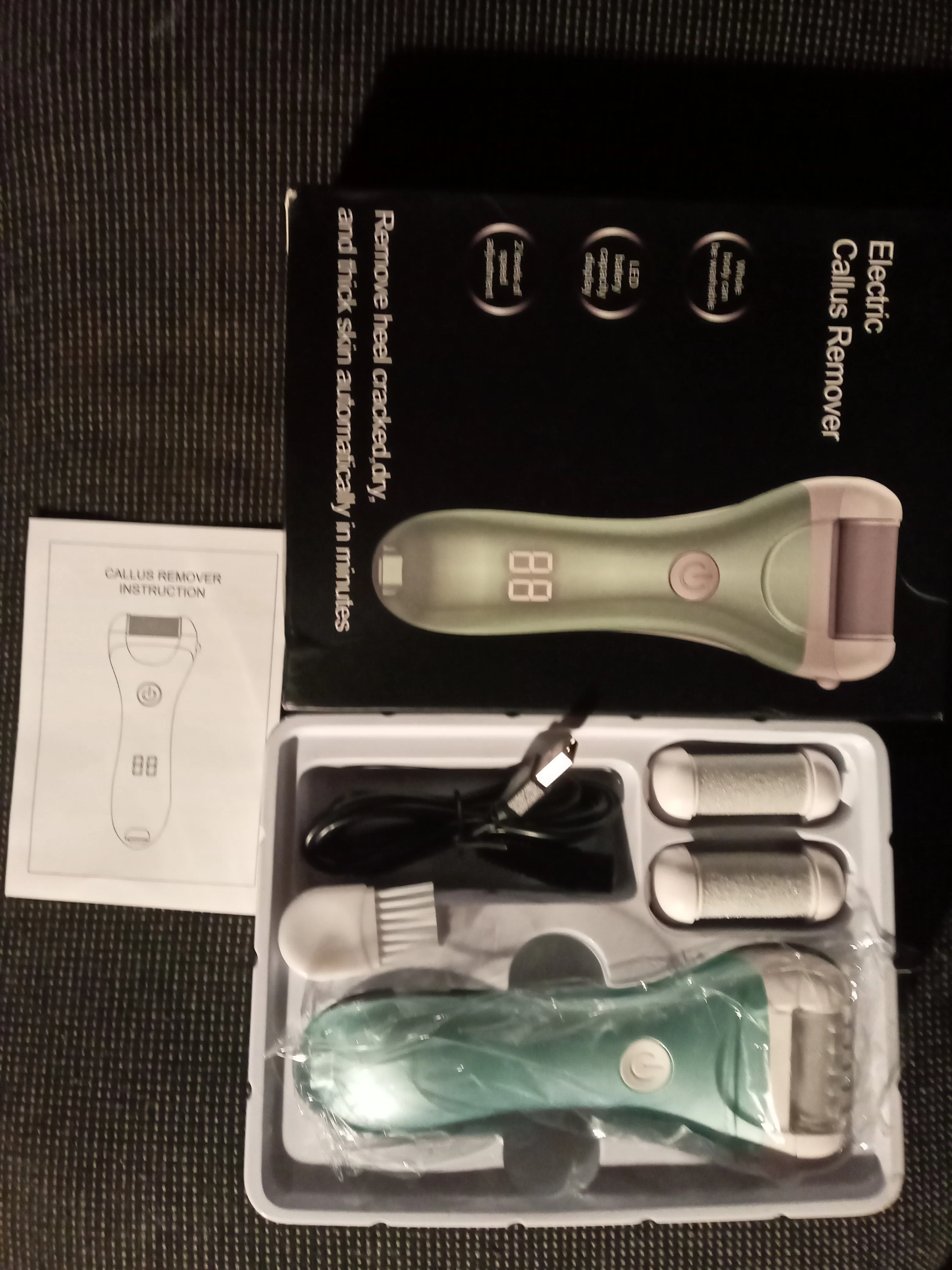 Рекомендую ответственного продавца и качественный товар. Посылку отправил быстро, упаковка надёжная. В комплекте пилка сразу имеет насадку, а также имеется 2 сменный насадки, шнур для зарядки, щёточка для очистки, инструкция на английском языке и коробка. Пилка с уровня 60 до 99 заряжалась 2,5 часа. Хочу обратить внимание, что дополнительные 2 насадки имеют более грубый абразив по сравнению с той, что сразу прикреплена к пилке (постаралась показать это на фото). Это здорово, ведь можно менять эти насадки и таким образом достигать наилучшего результата в обработке кожи. Всем рекомендую. Спасибо большое продавцу!