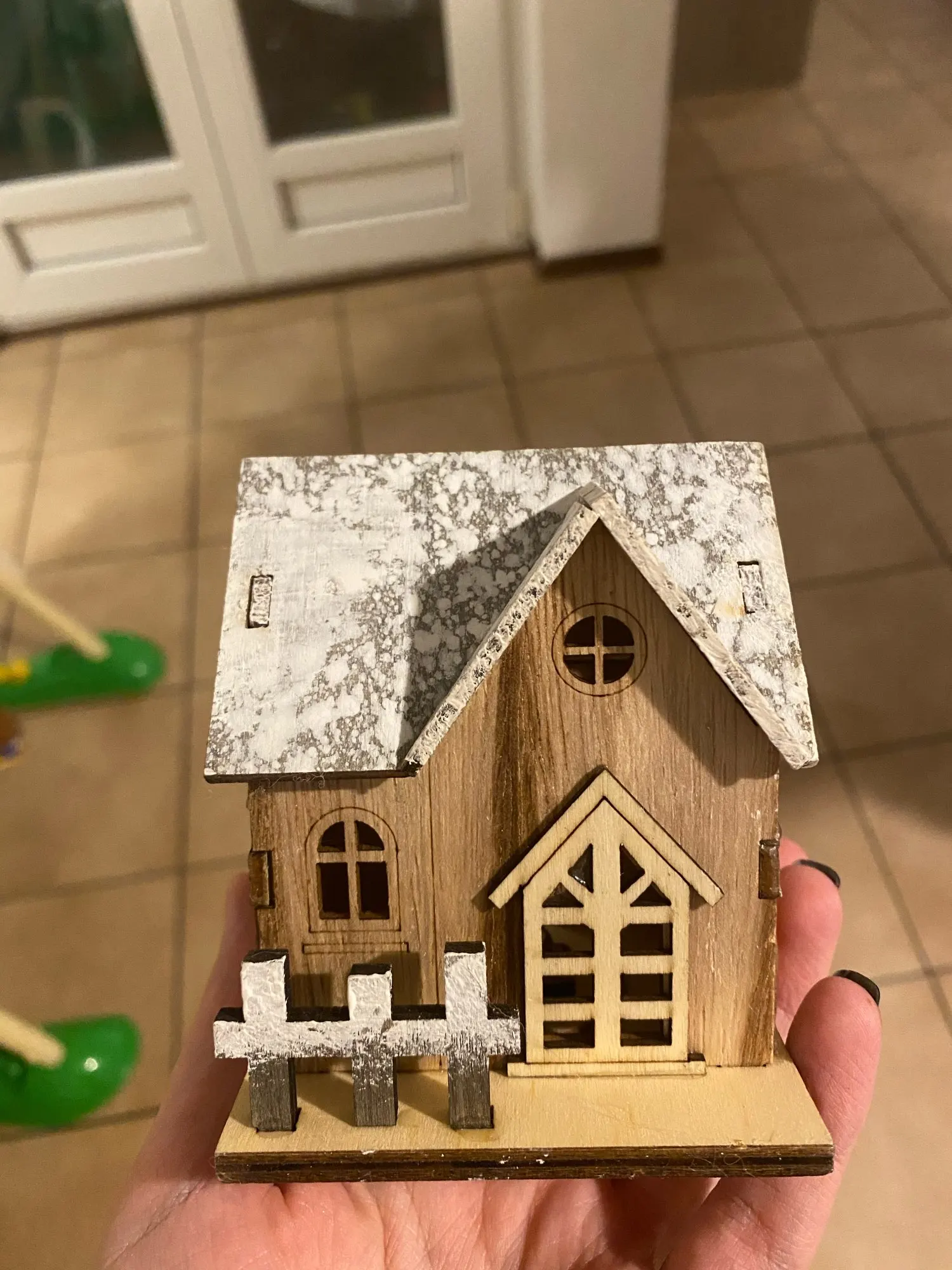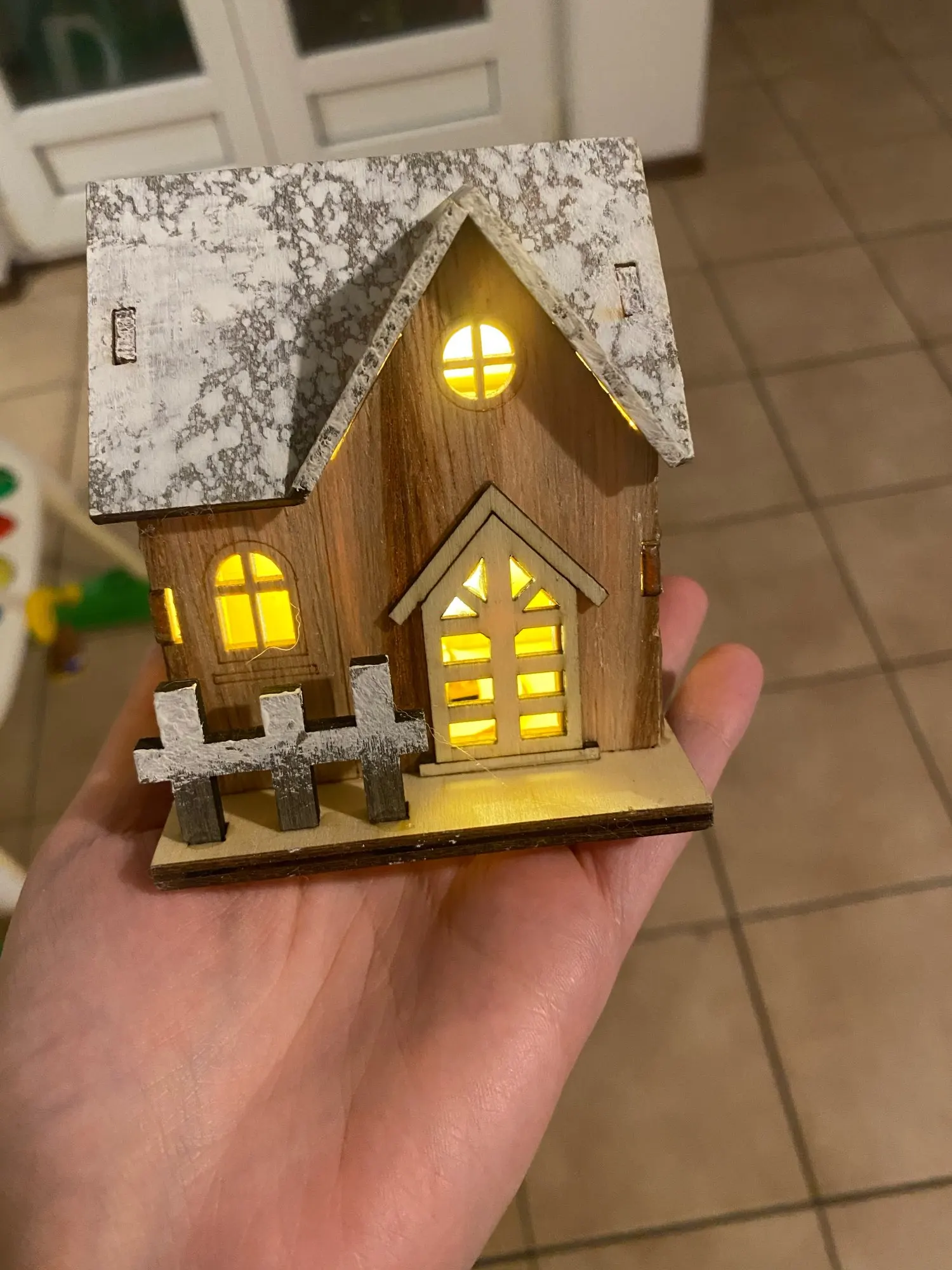 Красивый домик. Только собран немного кривовато. Отклеился и выпал блок с лампой, придётся клеить.