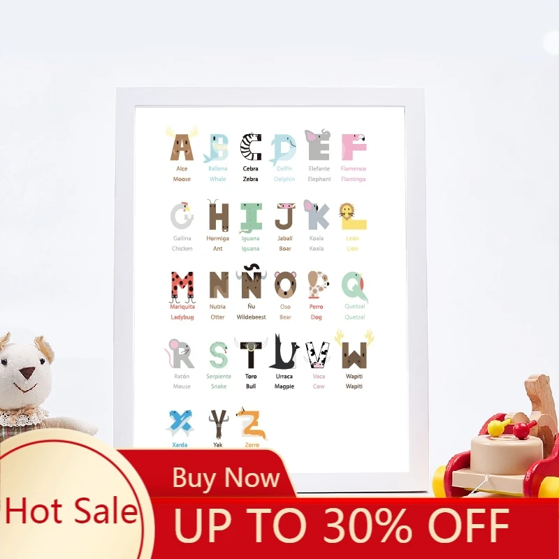 Китайский новый год Испанский Русский алфавит животных Графическое искусство холст картины детская Настенная картина Испания образование плакат с принтом в виде Винни Пуха Декор