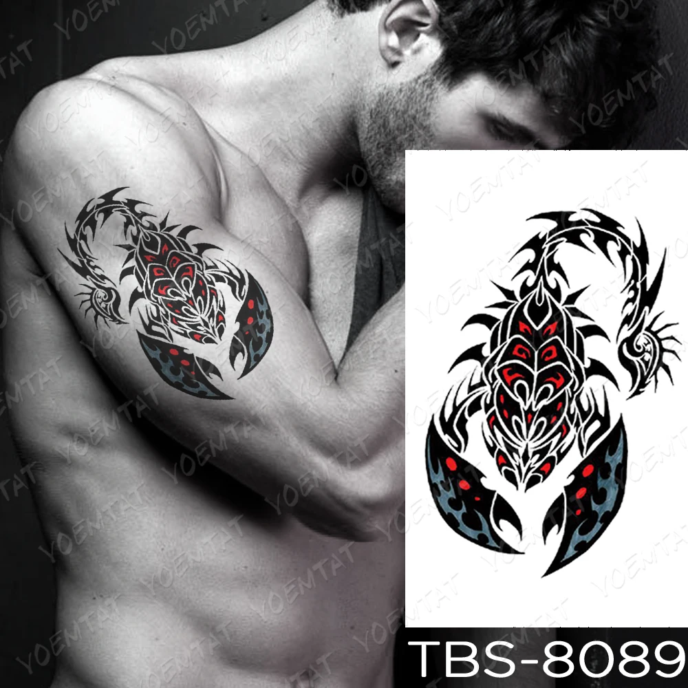Водостойкая Временная тату-наклейка Скорпион Тотем флеш-тату крылья Дракон маори боди арт рука для переноса воды поддельные тату для мужчин