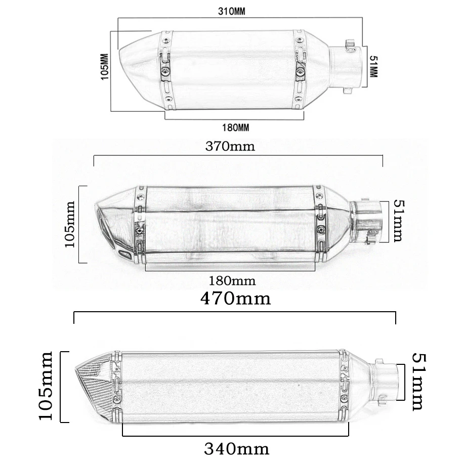 Выхлопная труба для мотоцикла nmax CB400 ER6N GY6, универсальный глушитель 38-51 мм, 310 мм, 370 мм, 470 мм