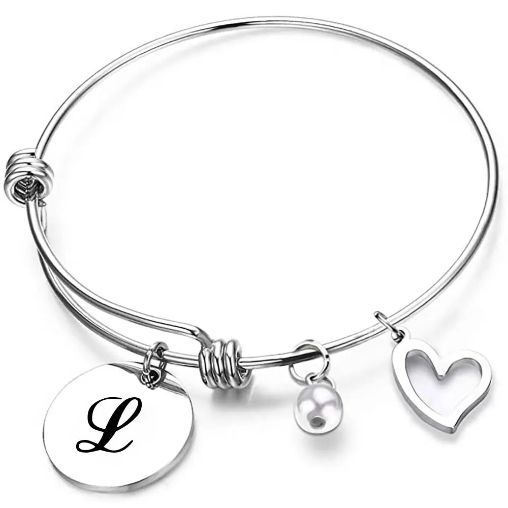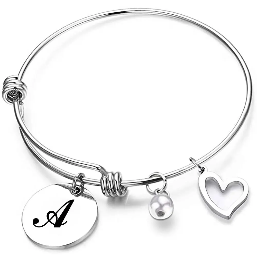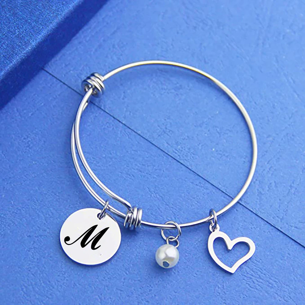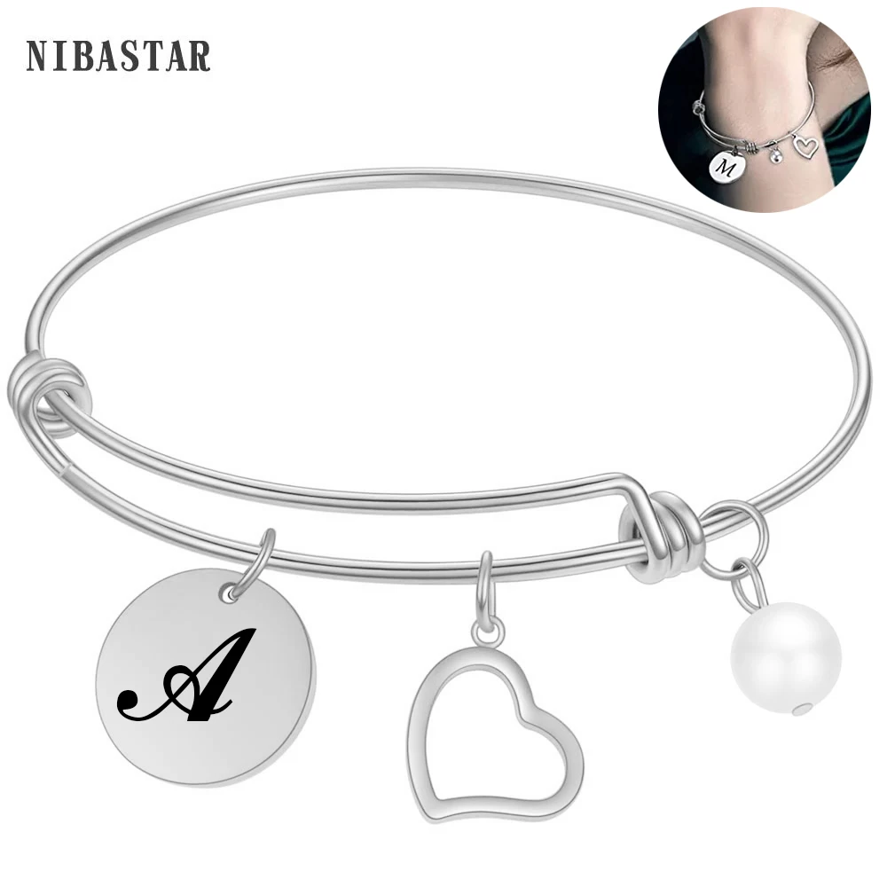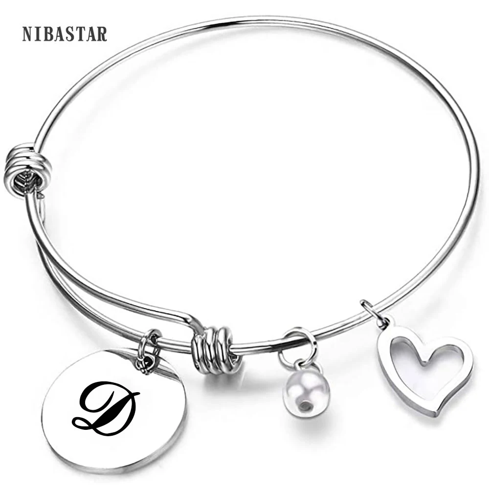Женские браслеты из нержавеющей стали с регулируемой буквой и круглой подвеской, A-Z, ювелирные изделия