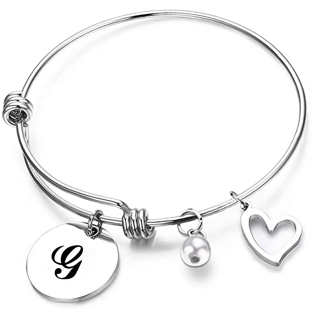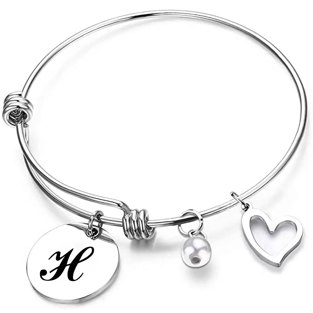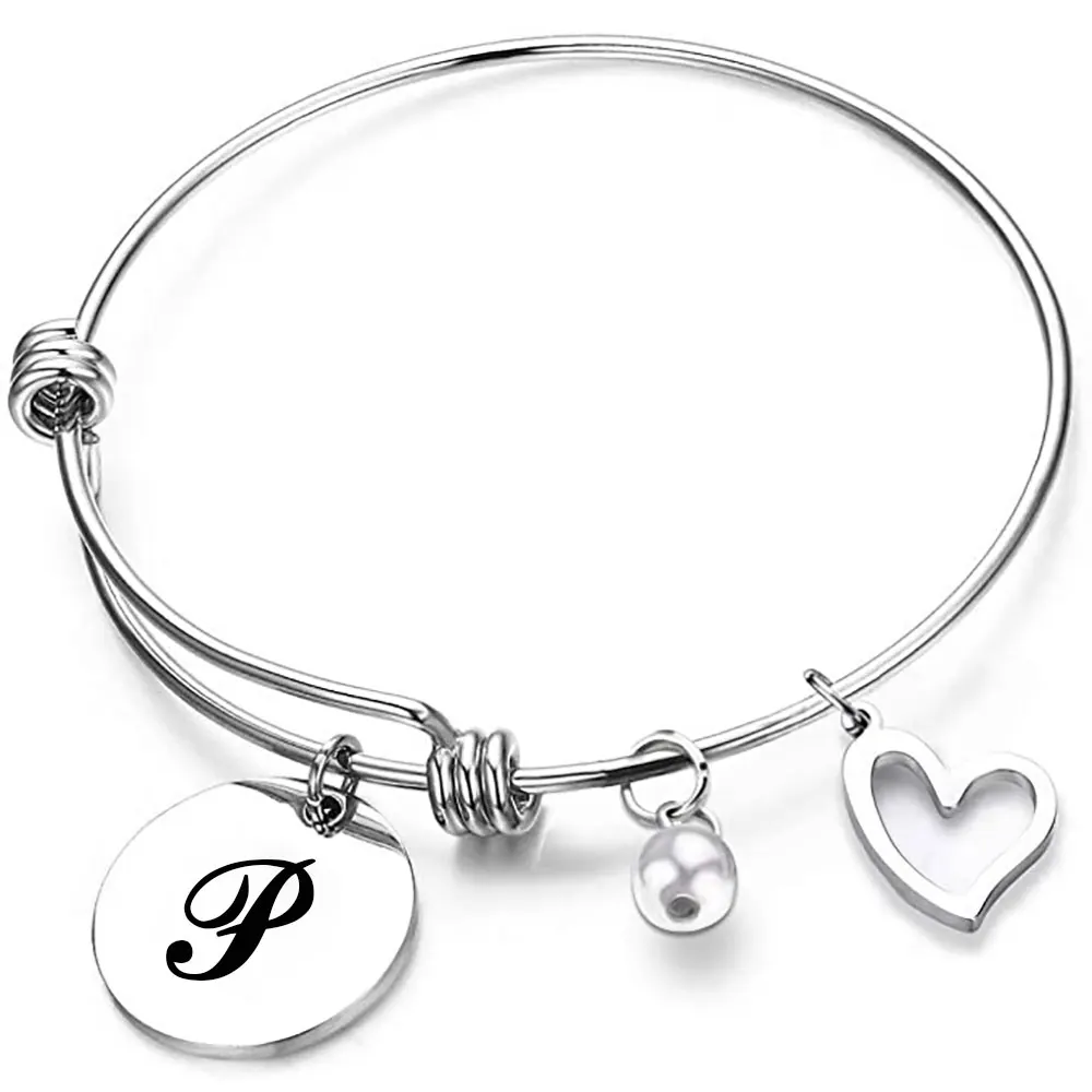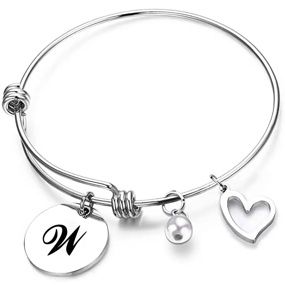 Женские браслеты из нержавеющей стали с регулируемой буквой и круглой подвеской, A-Z, ювелирные изделия