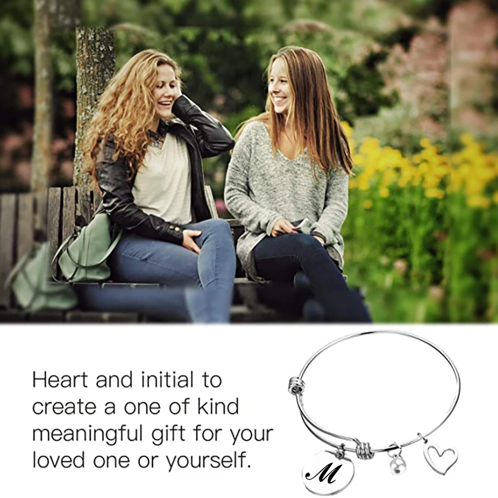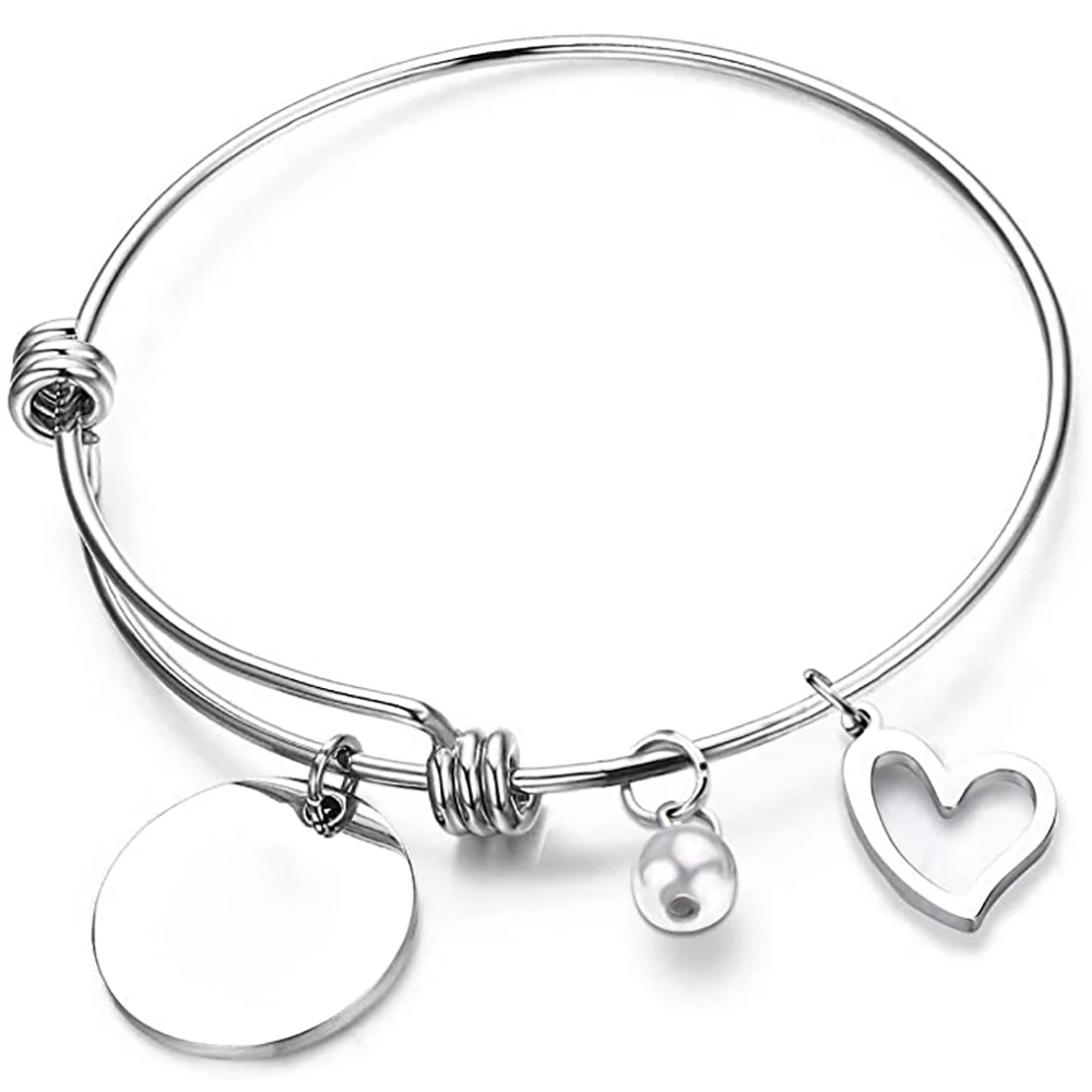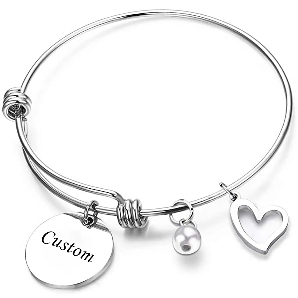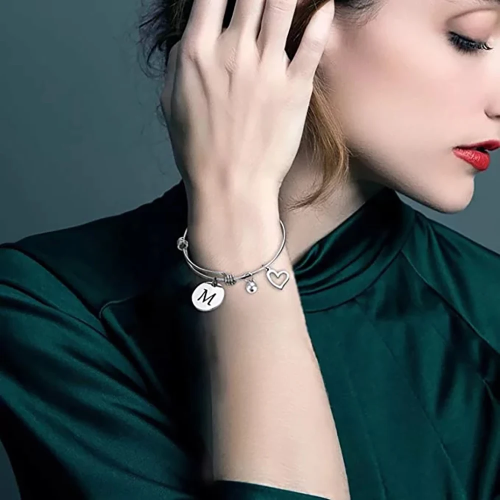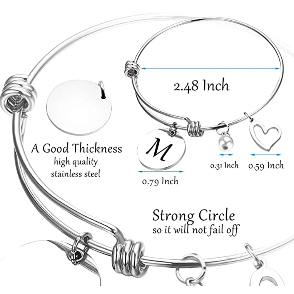 Женские браслеты из нержавеющей стали с регулируемой буквой и круглой подвеской, A-Z, ювелирные изделия