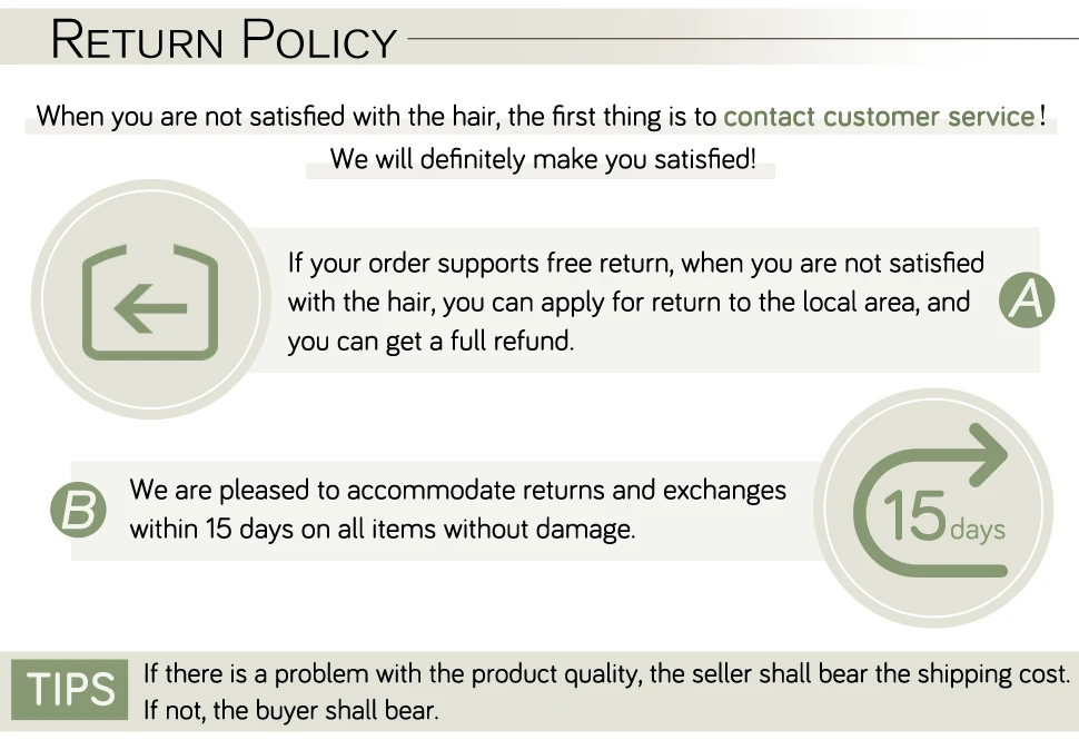 1. Товары в наличии будут отправлены в течение 2 рабочих дней.2. Доставка в большинство стран осуществляется в течение 10-20 рабочих дней.3. Если есть какие-либо проблемы с товаром, пожалуйста, не стесняйтесь связаться с нами, мы рады принять возврат и обмен в течение 15 дней на все товары без повреждений.