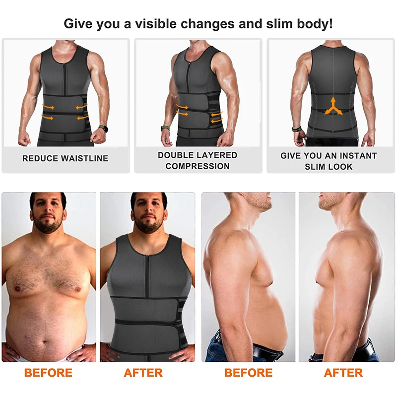 Готов к поту в сауне: этот жилет 2-в-1 и талия вместе для мужчин изготовлены из неопрена и полиэстера синтетических материалов, дышащие и регулируемые, достаточно гибкие, чтобы двигаться. Наденьте этот тренажер для мужчин перед тренировкой Поможет вам сбросить дополнительное количество воды и сохранить тепло тела, чтобы сжечь больше калорий. Также этот мужской тренировочный жилет для похудения в сауне для формирования тела согреет Вас в холодные дни.Легко надевать и снимать: Модернизированный неопреновый формирователь тела с молнией легко надевать и снимать. Мужской костюм Faja neopreno идеально прилегает к телу, обеспечивая удобную посадку и прямые плечи. Хорошие компрессионные рубашки для мужчин для похудения!Лучший тренировочный жилет WASIT: Неопреновый тренажер для сжигания жира на животе для мужчин с тренажером для талии-это модель полного жилета для вашей основной области живота, плюс внешний регулируемый пояс, который увеличивает вашу термогенную энергию и плоский живот, чтобы помочь вам насытить интенсивный пот и более эффективно пролить фунты.Подходит для всех случаев: Компрессия жилета может сгладить жир живота и живота, исправить осанку и поможет вам быстро потеть при сжигании жира и контролировать живот, мужской тренировочный жилет для похудения, горячий корсет из неопрена, корректирующий фигуру, можно носить под все виды рубашек или корректирующей одежды. Подходит для бега, тренажерного зала, игры в баскетбол и сауну, высокоэффективный инструмент для упражнений для мужчин всех форм и размеров.Удовлетворенное обслуживание клиентов: Наша цель-обеспечить удовлетворенность для всех клиентов. Пожалуйста, не стесняйтесь обращаться к нам, если возникнут проблемы с этим неопреновым корректирующим бельем, мы поможем вам в кратчайшие сроки.