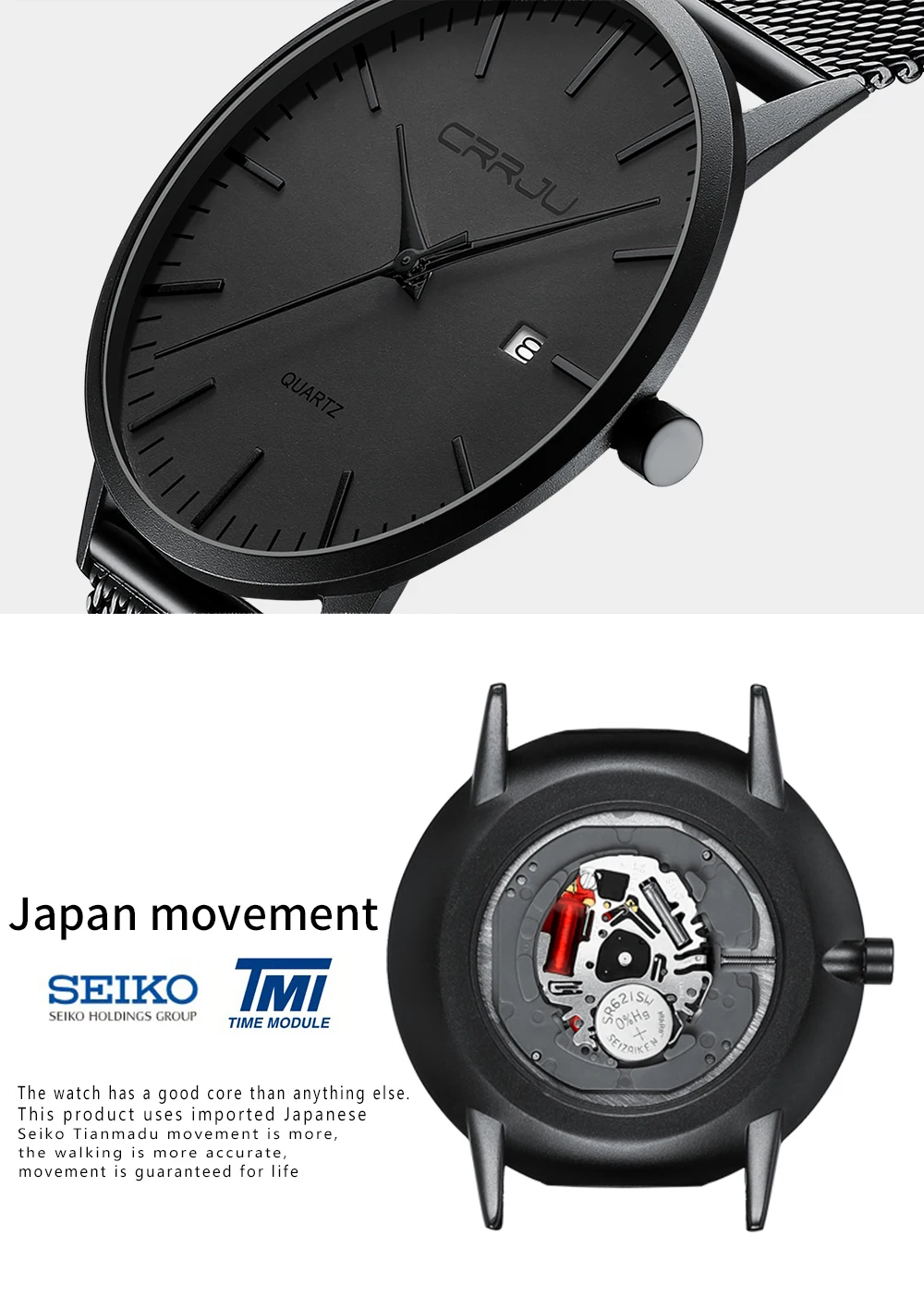 Мужские тонкие часы CRRJU, Роскошные ультратонкие кварцевые часы, м...