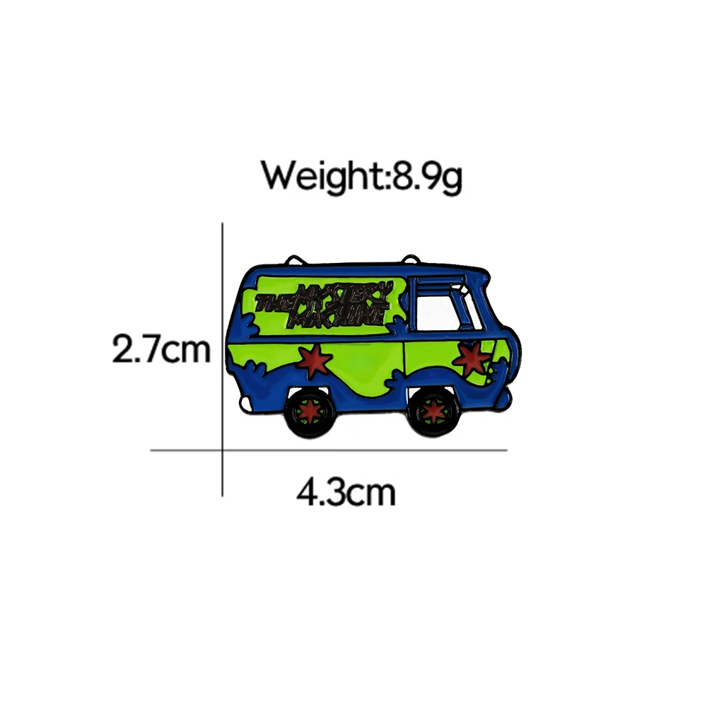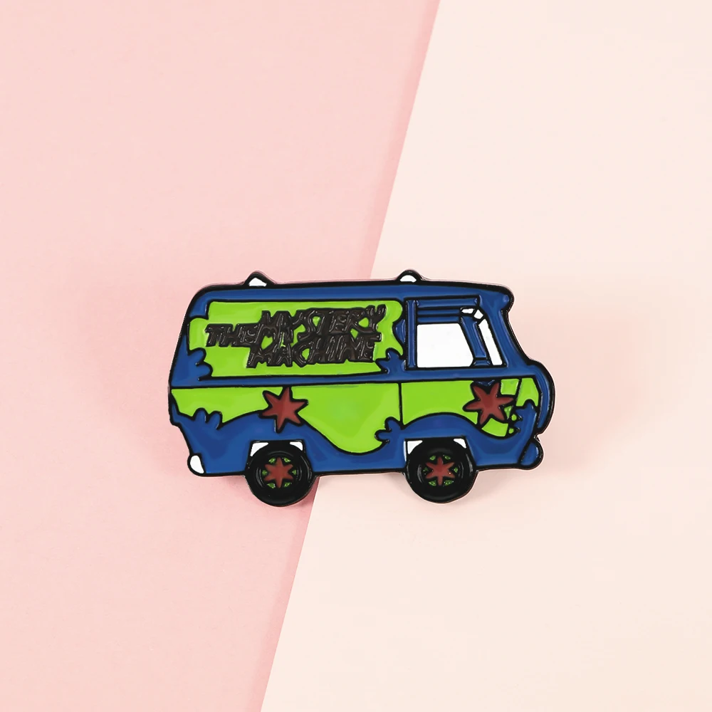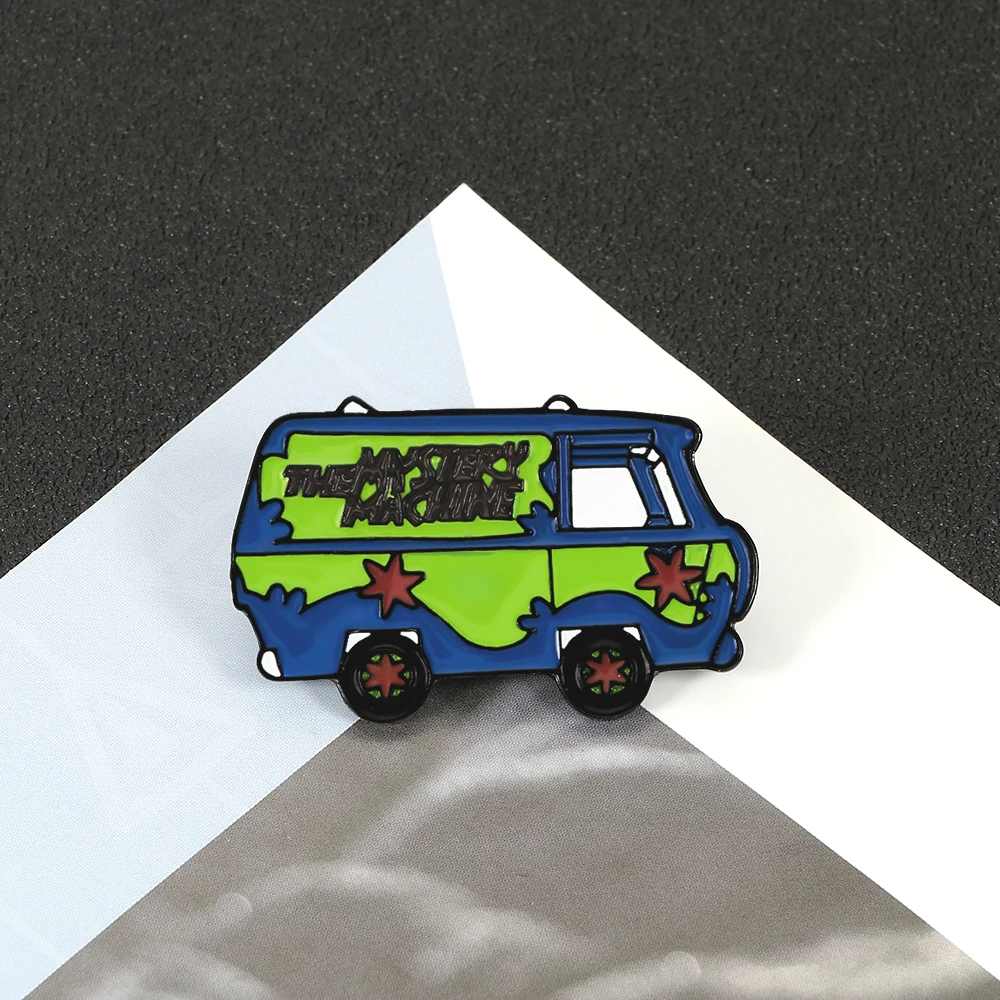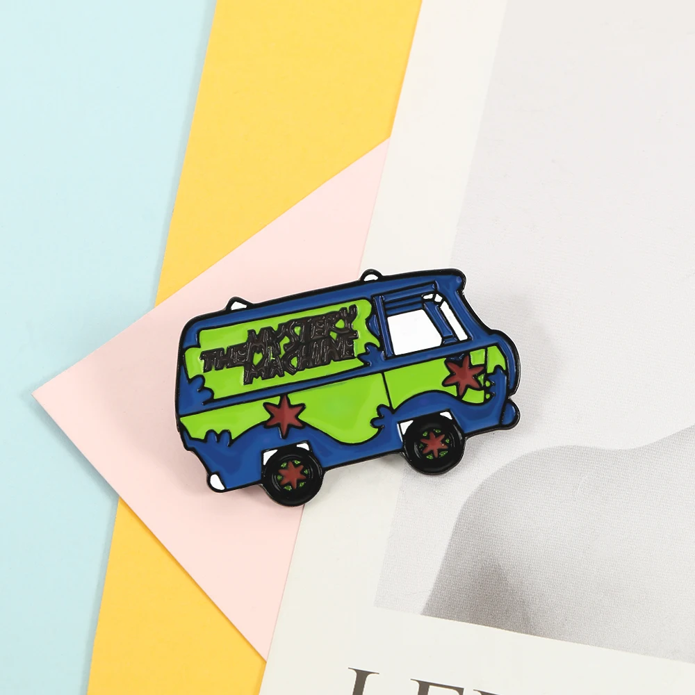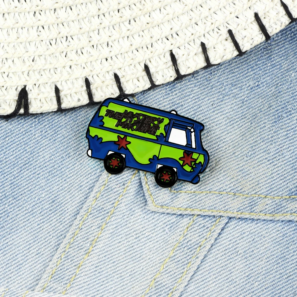 Зеленая брошь в виде дорожного автобуса, эмалированные булавки в виде таинственной машинки, булавка для лацкана для женщин и мужчин, Мультяшные уличные украшения, подарки для детей