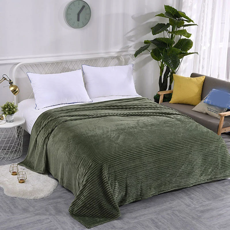 Одеяла для кроватей Однотонное полосатое одеяло из кораллового флис...