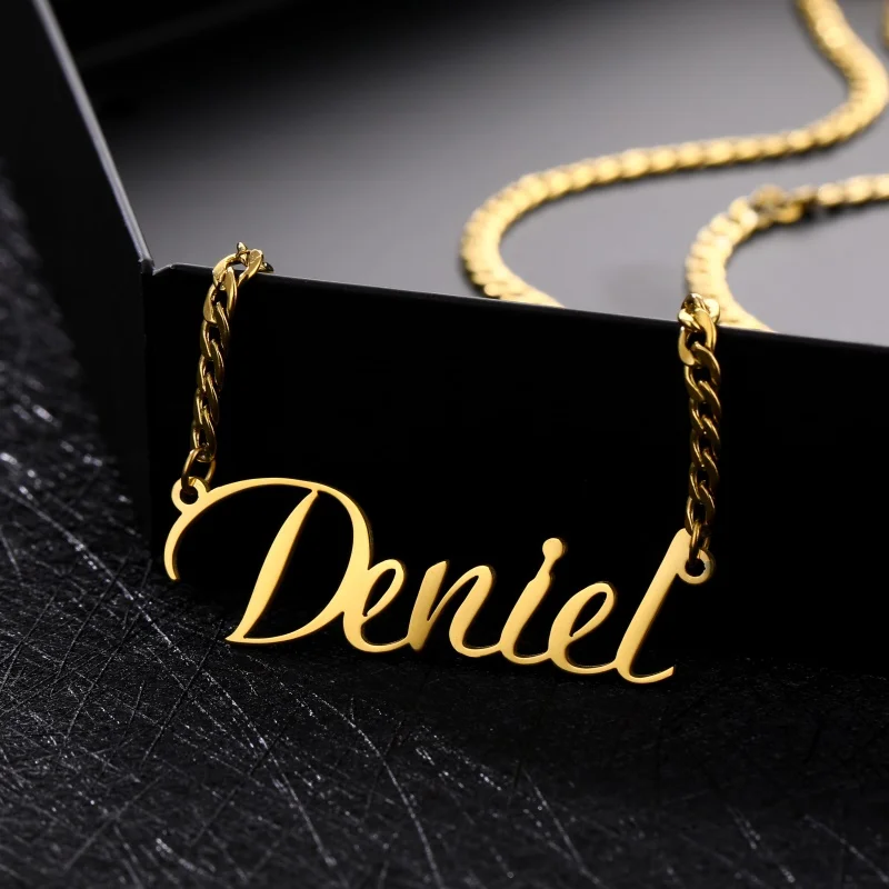 Персонализированное именное ожерелье из нержавеющей стали золотого цвета, кулон, именная табличка, ожерелье с 3 мм кубинской цепочкой для мужчин и женщин
