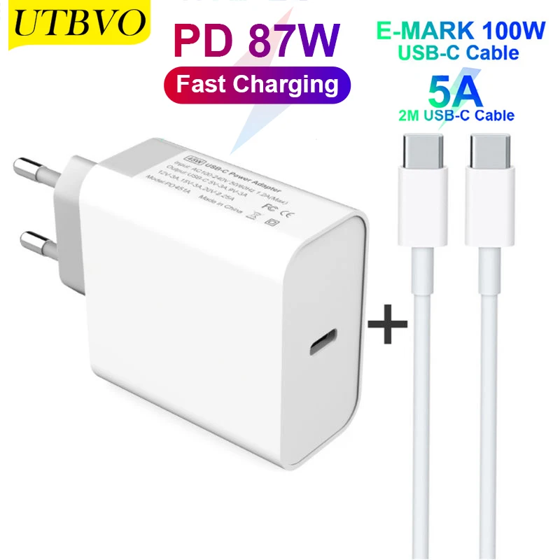 Адаптер питания UTBVO, USB C, 87 Вт, PD, настенное зарядное устройство для iPhone 12, Xiaomi, планшетов, MacBook ProAir, Samsung, iPhone, iPad Pro