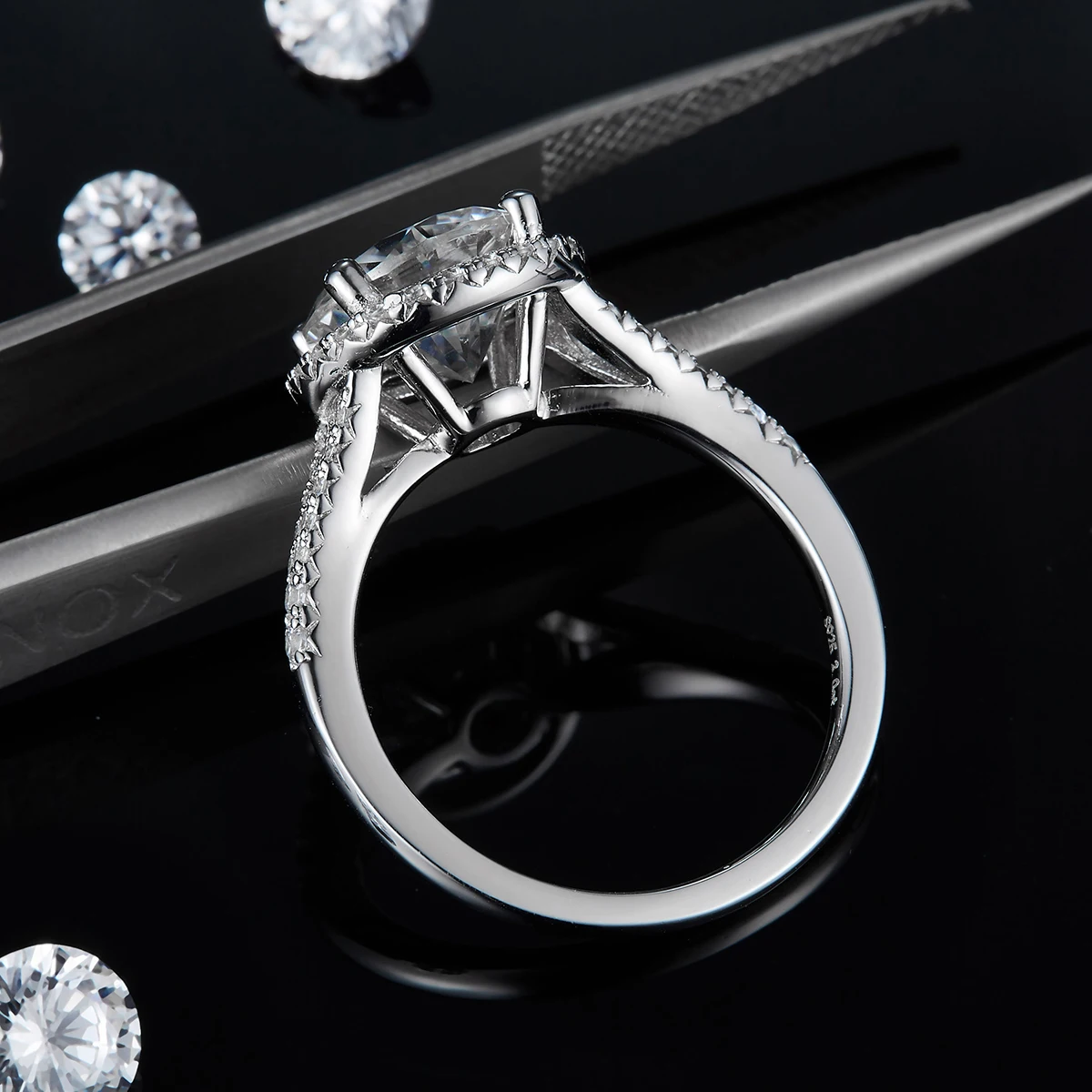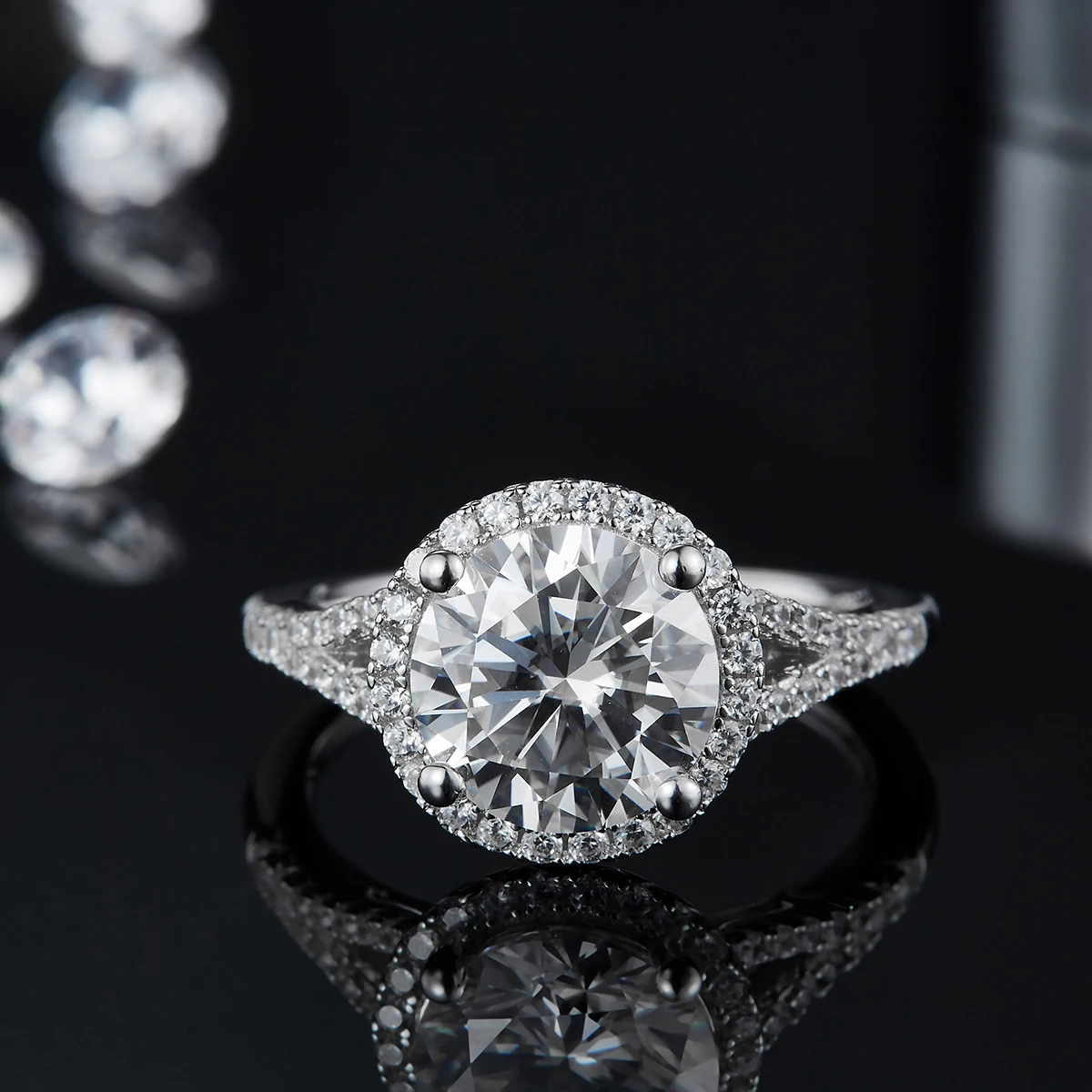 *** Примечание: Moissanite D цвет. Только основной камень-моиссанит, другие-циркон. 1.5ct Муассанит является 7,5 мм, 2ct Муассанит составляет 8 мм. 3Ct moissanite 9 мм.