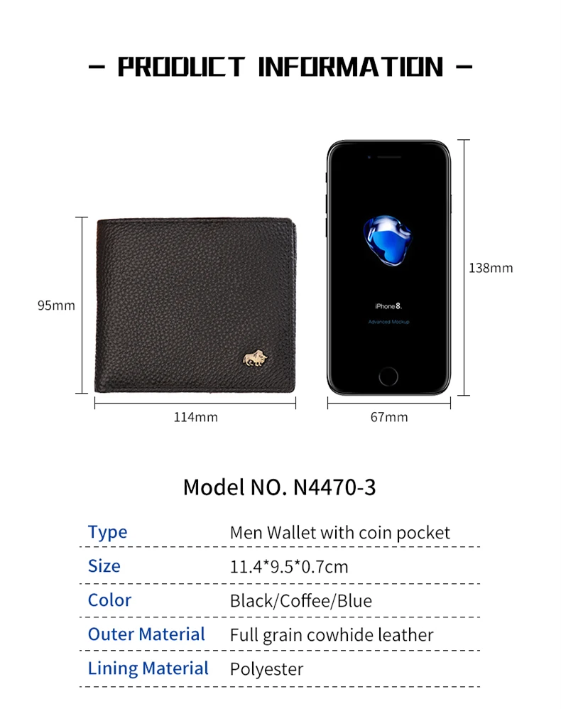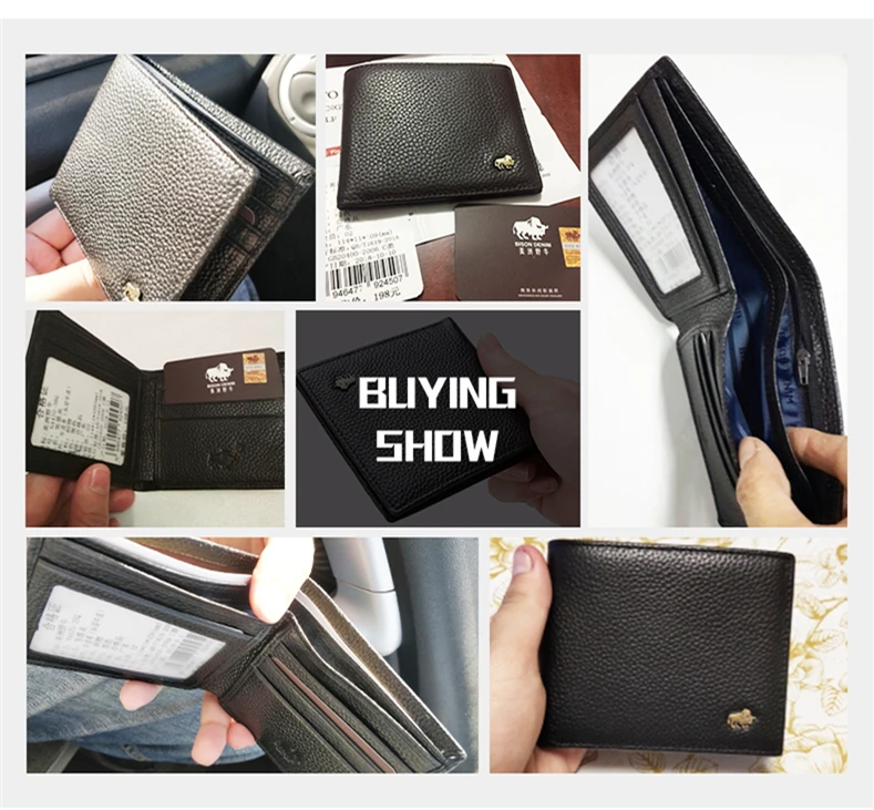 Черный деловой кошелек Bison Denim из натуральной кожи, брендовые Роскошные бумажники с RFID-защитой, мужской клатч на молнии с монетницей и держателем для карт