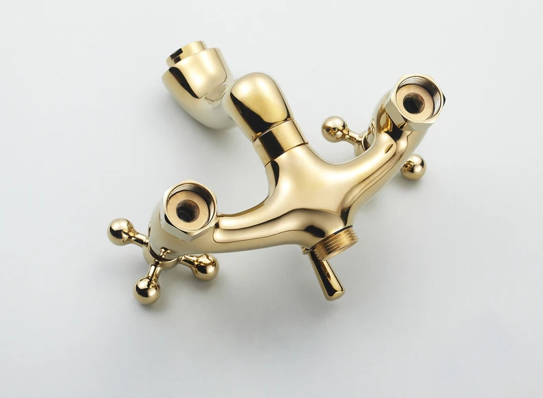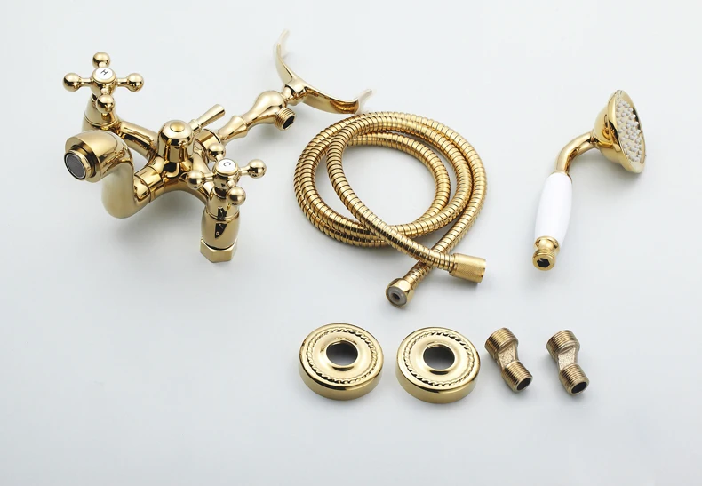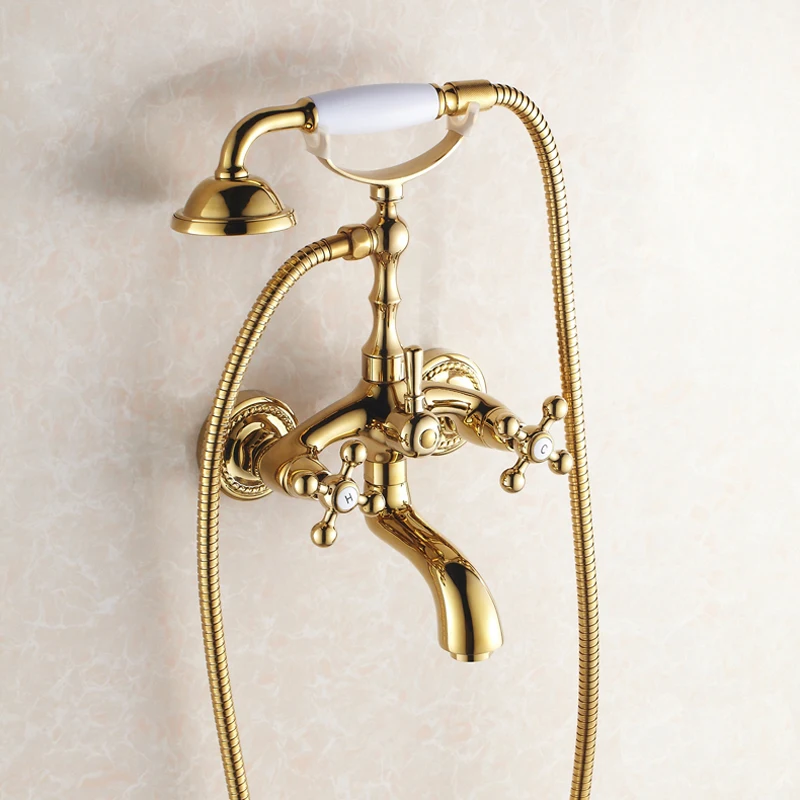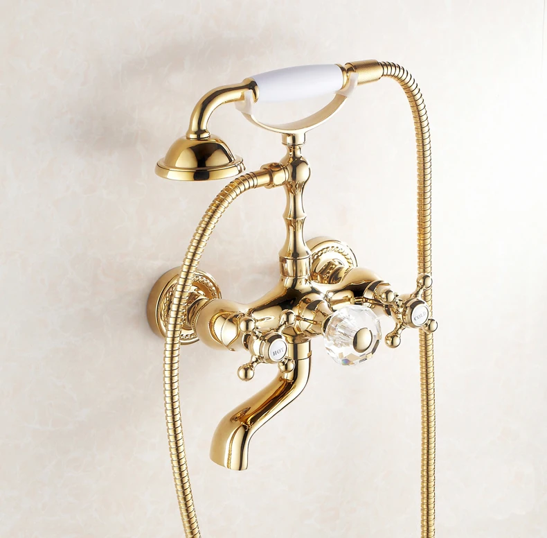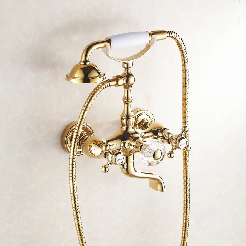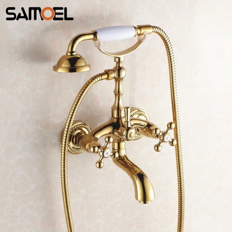 Популярный золотистый латунный Смеситель для душа, кран для ванны, настенный медный смеситель с двойной ручкой, набор золотистых кранов для ванны SF1072