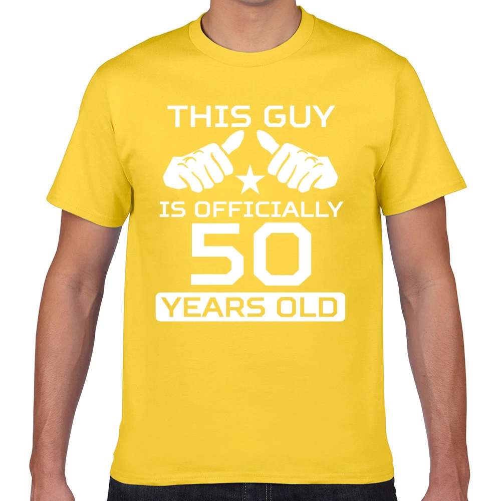 Топы Футболка Для мужчин этот парень 50 лет забавные 50th на день рождения подходит надписи Geek Хлопковая мужская футболка XXXL