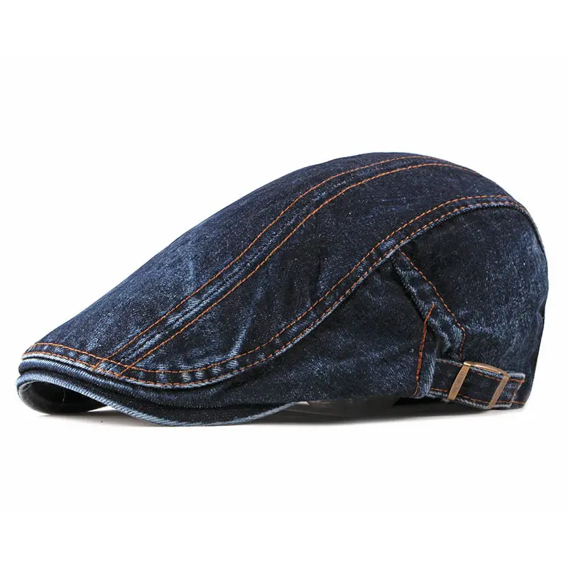 Кепка газетчика однотонная мужская, из потертого денима, на весну-лето
