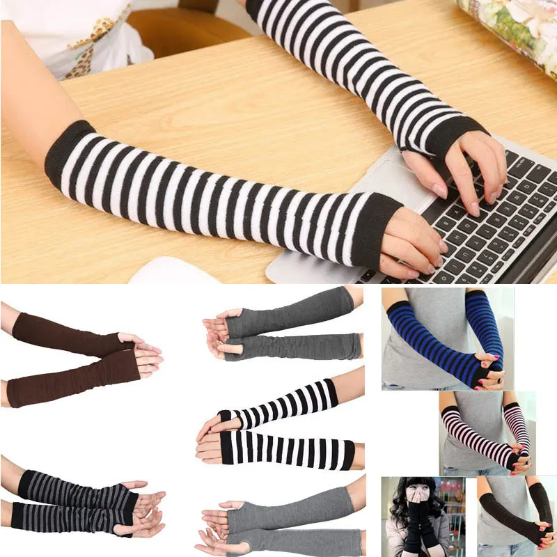 Женские эластичные мягкие вязаные теплые перчатки без пальцев с длинным рукавом в полоску AUG889