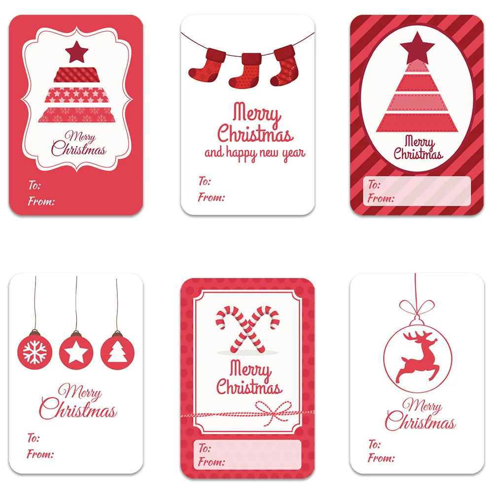 Клейкие Именные Бирки для рождественских подарков, 250 шт. в рулоне, 6 видов конструкций, рождественские стикеры подарок, этикетки для печати, рождественские наклейки, подарочная упаковка