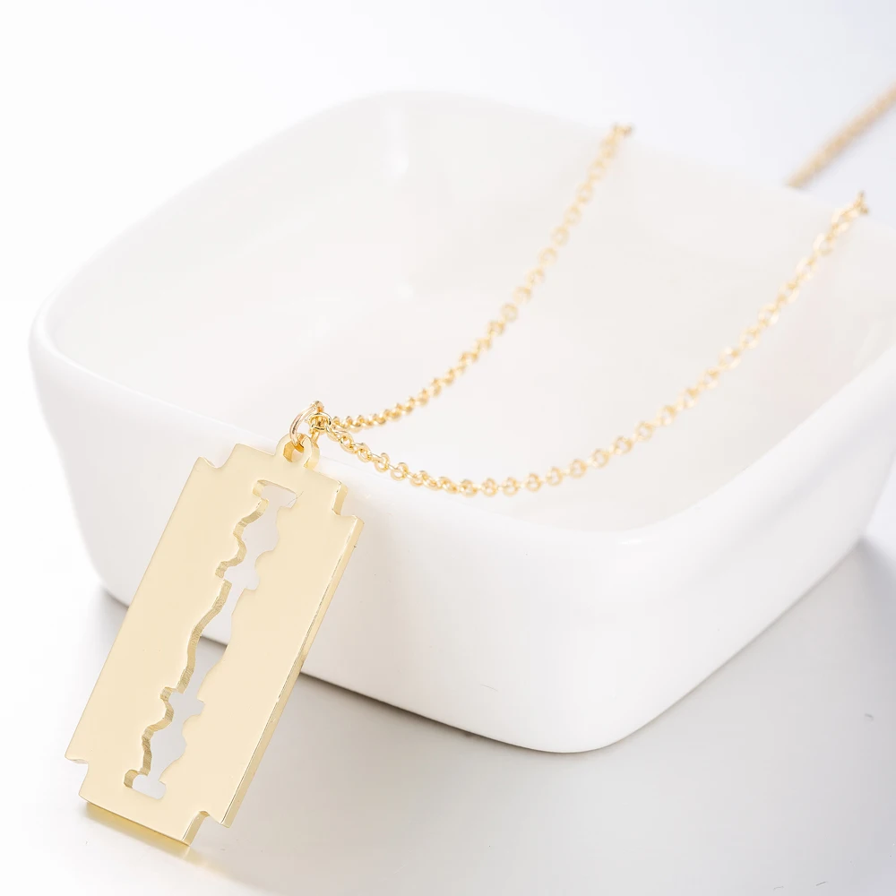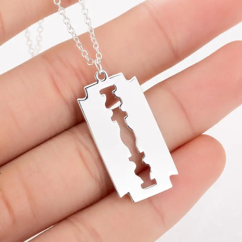 Ожерелье с подвеской из нержавеющей стали, мужские бритвенные лезви...