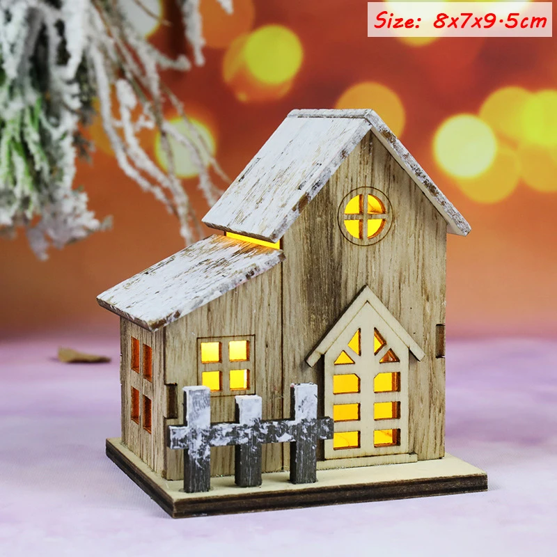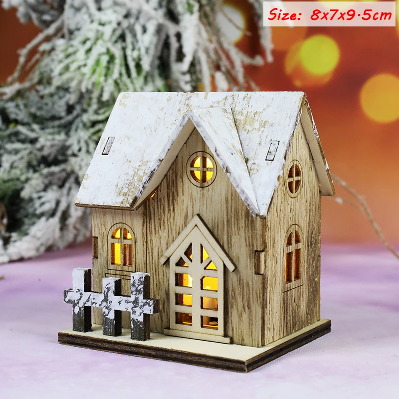 Рождественская светодиодная подсветка, деревянный дом, светящаяся кабина, украшения для рождественской елки, украшения для дома, рождественские украшения, подарок сделай сам на новый год