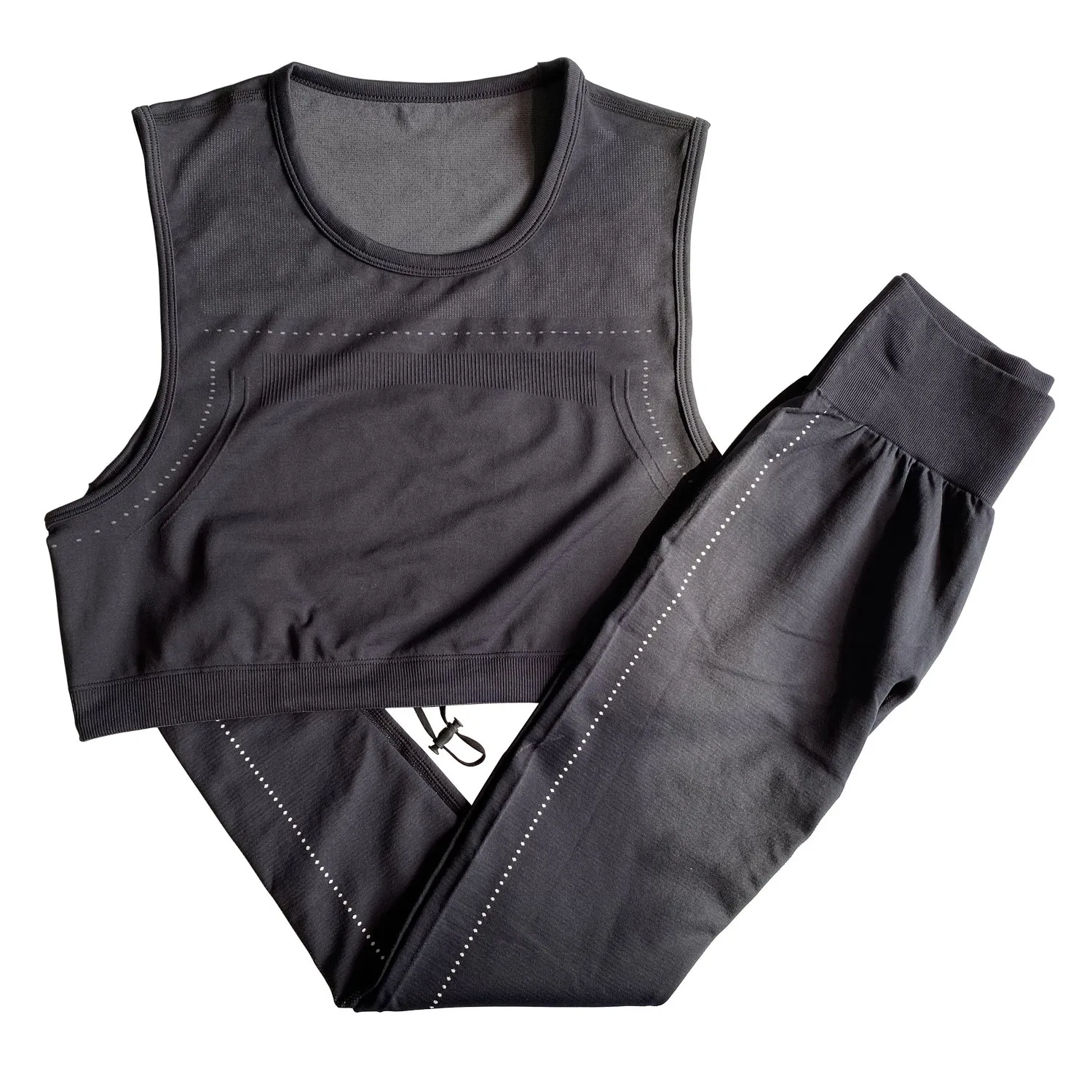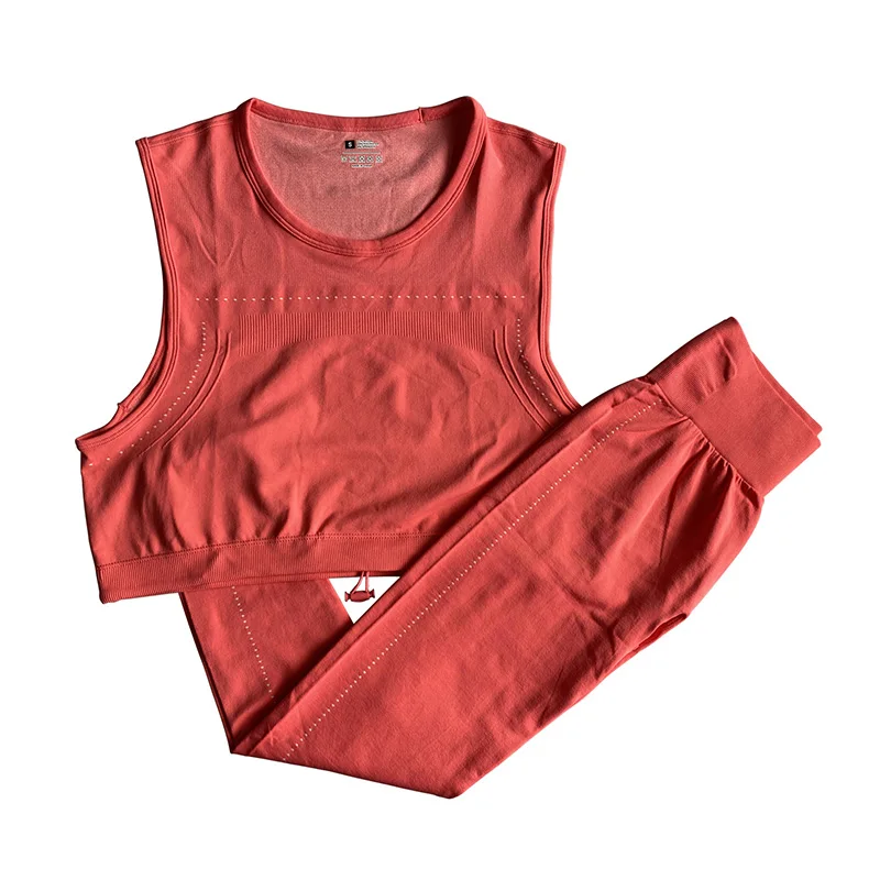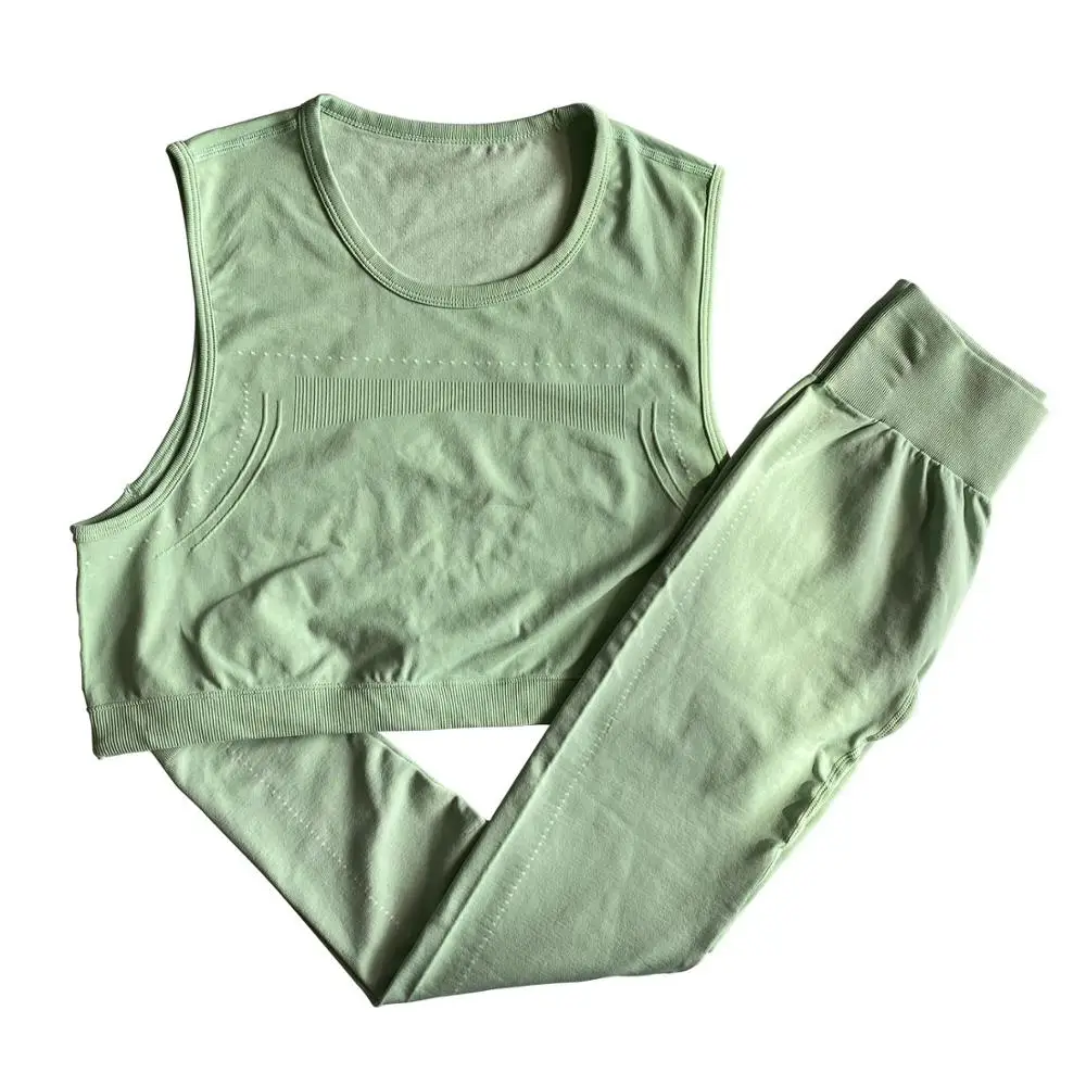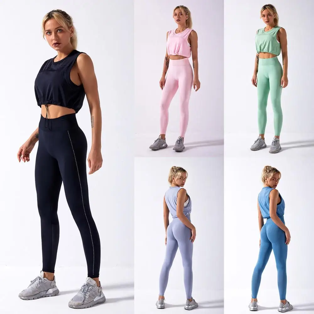Женский спортивный костюм без рукавов с топом и леггинсами для фитнеса, спортивный костюм из 2 предметов, спортивная одежда, легкий бесшовный комплект для йоги, 2020