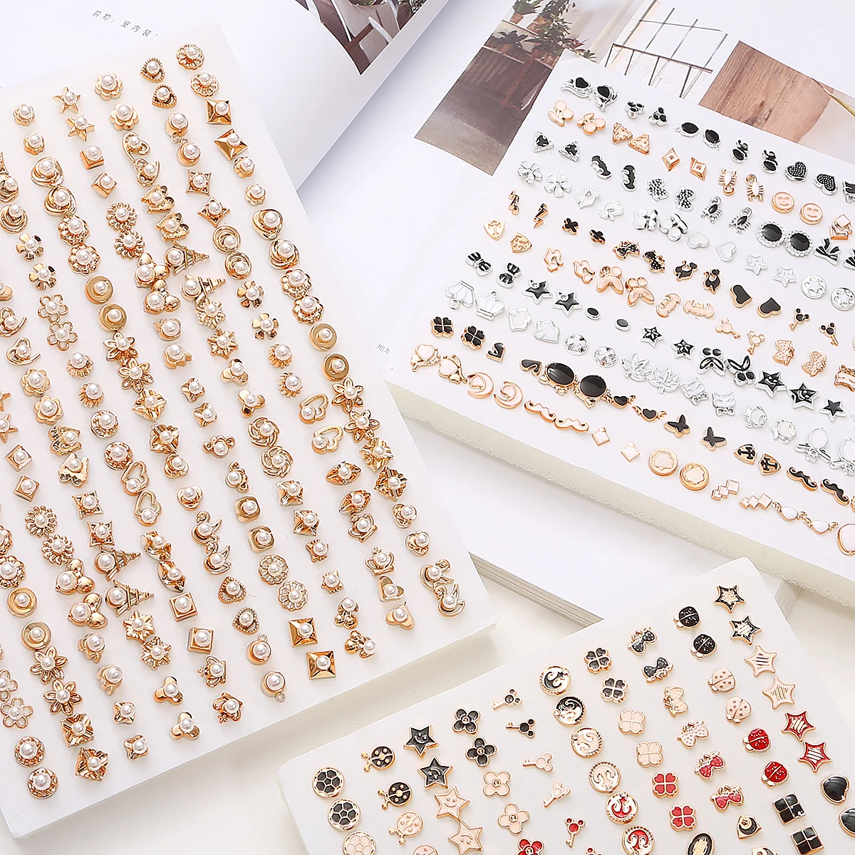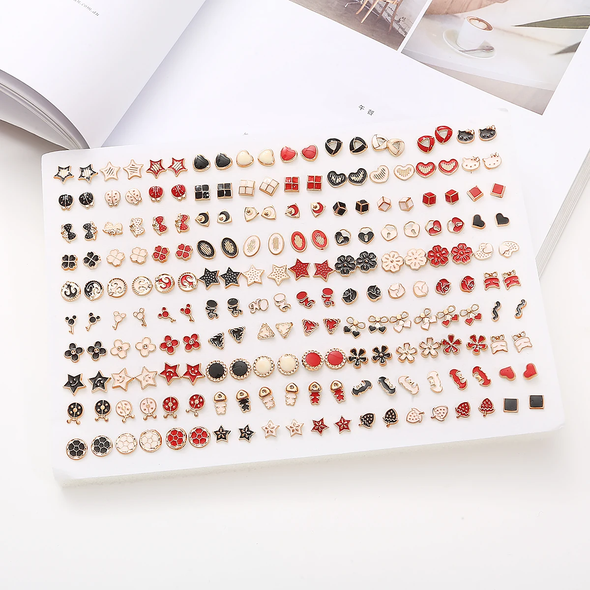 Серьги-гвоздики в форме цветка, Луны, 100 звезды, металлические, разноцветные стразы шт.партия, в виде сердца, для влюбленных ювелирных изделий, женские серьги шт.партия