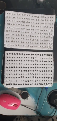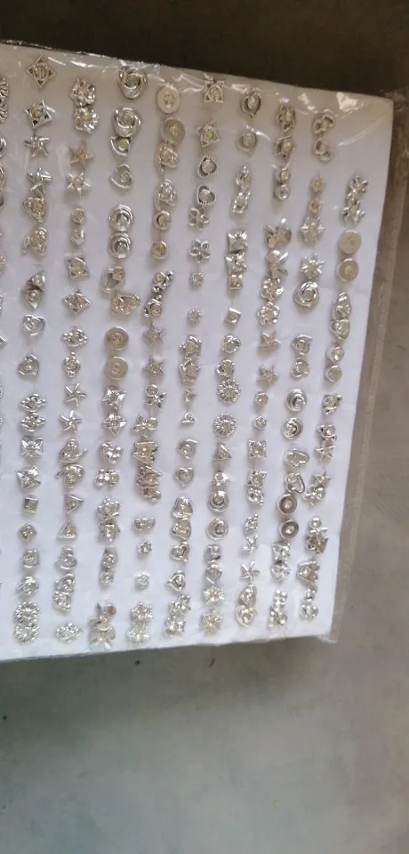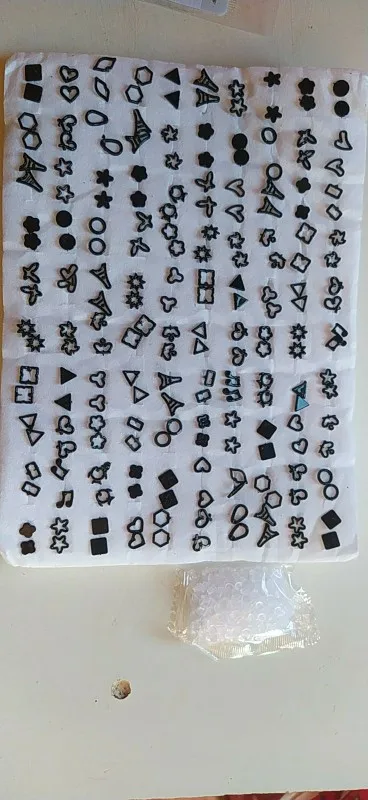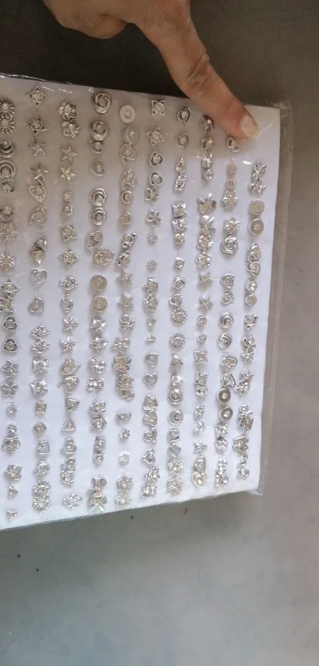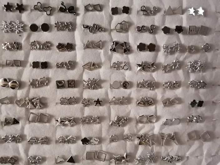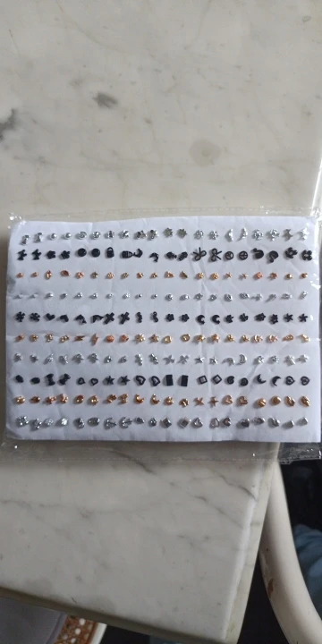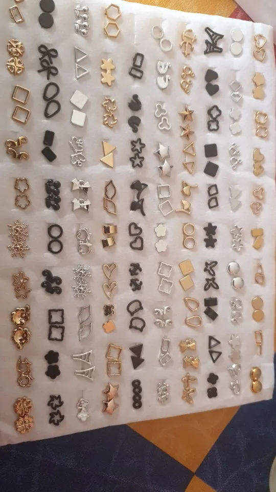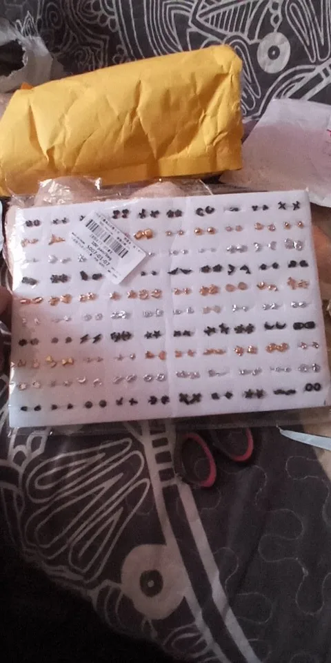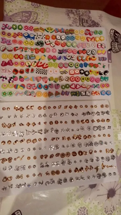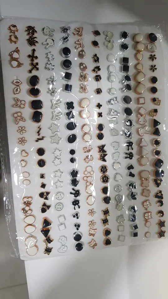 набор дошел ооочень быстро, буквально за 10-12 дней сережки ужасного качества, но носибельные в глаза не бросается их некачественное выполнение конечно, стоимость очень низкая для качества получше, но все же впервые вижу гвоздики из "силикона", необычно сплава я здесь не увидела, есть несколько серёжек, где материал верха похож на что-то металлическое, но не уверена в этом пластик, пластик и только пластик ну и опять же, претензий нет, так как за такую цену 100 серёжек это более чем