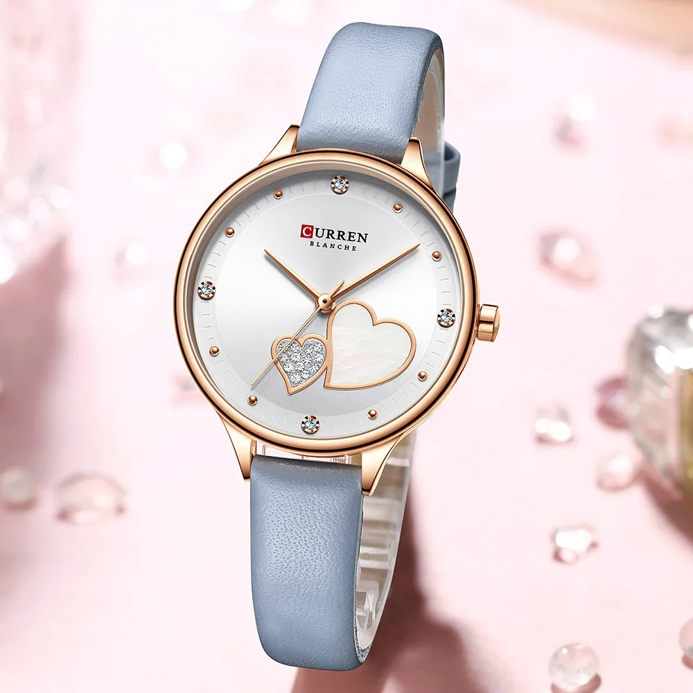CURREN Часы для женщин Роскошные Стразы кварцевые наручные Часы с кожей элегантные модные Женские Часы