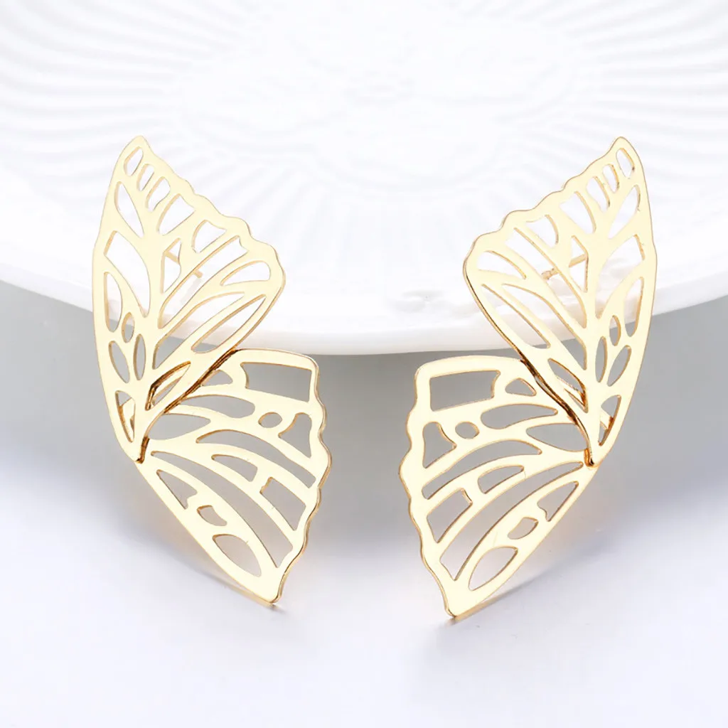Женские массивные серьги в виде крыльев бабочки, необычные металлич...