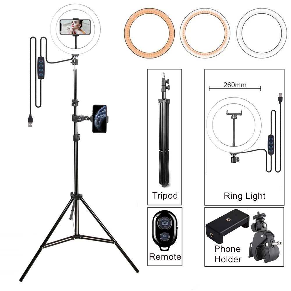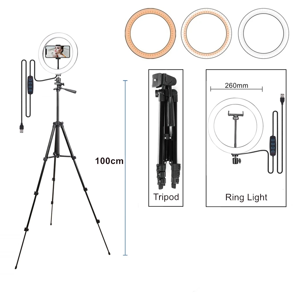 Светодиодная кольцевая лампа, Трипод для мобильного телефона, портативный светильник для селфи, со штативом для сотового телефона, подходит для макияжа и видеосъемки