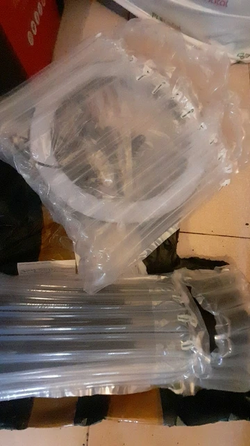 Я ожидал, что он придет в коробке, по крайней мере, не так свободно, и кусочки летают. Штатив довольно высокий и кольцо, хотя выглядит как фольга довольно хорошо