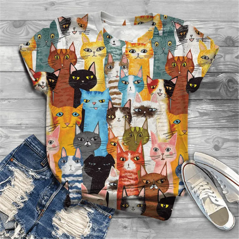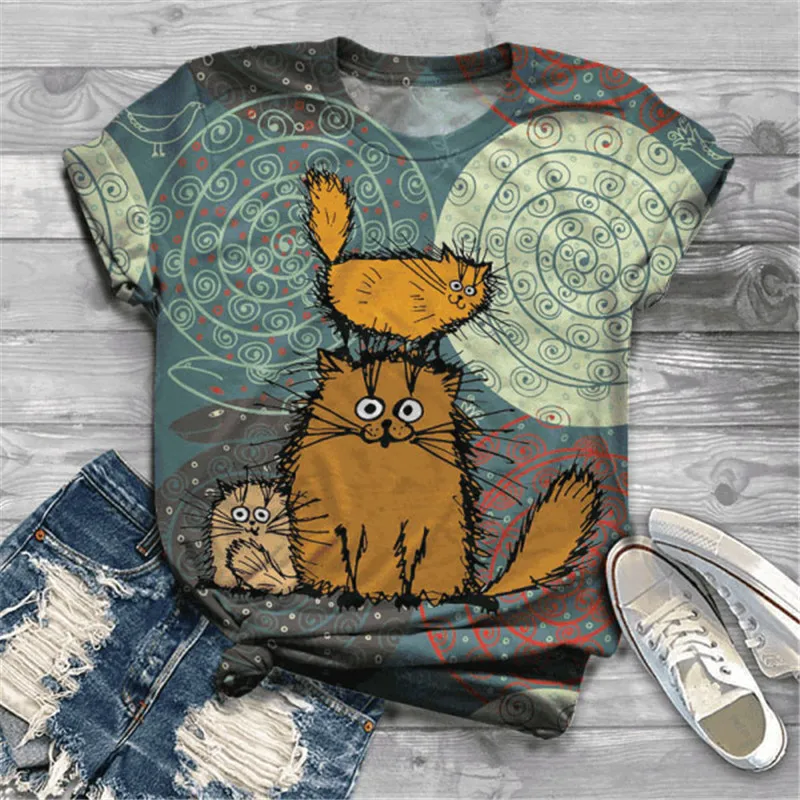Летняя модная одежда, футболки с графическим рисунком кошки, женски...