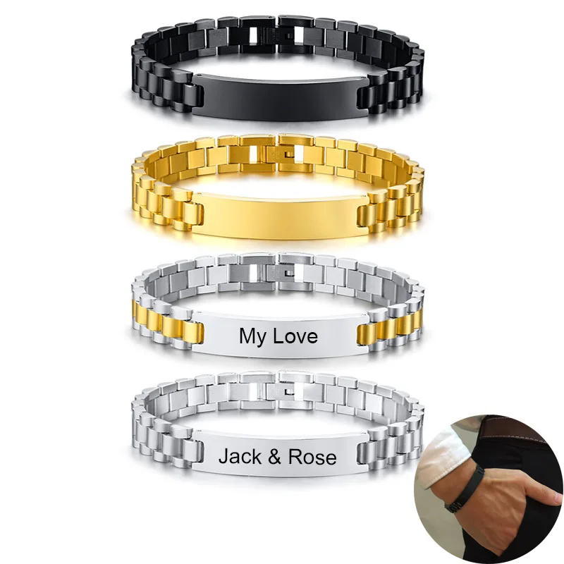 Браслет-цепочка из нержавеющей стали с гравировкой для мужчин и женщин