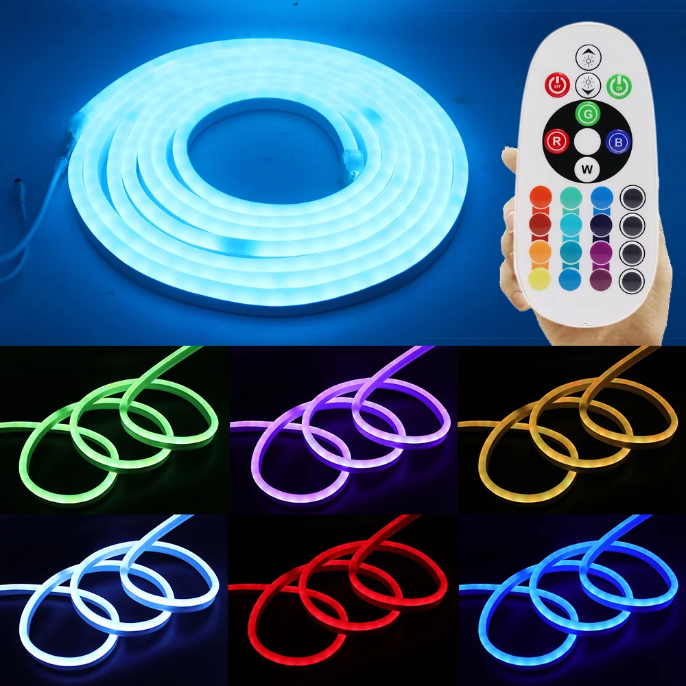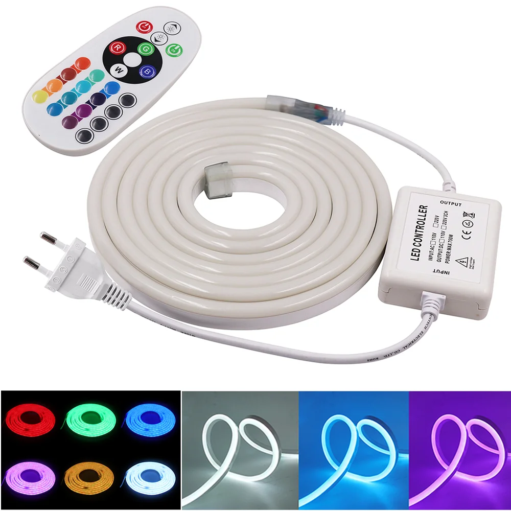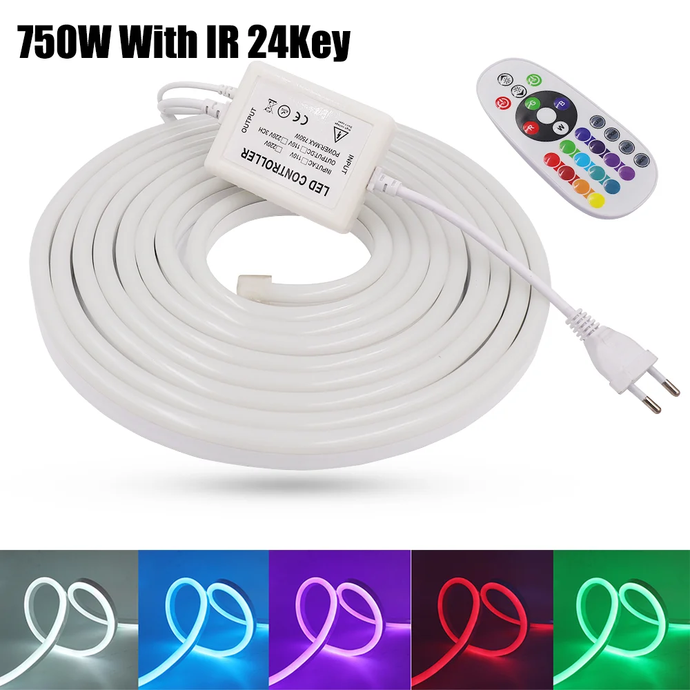 220V RGB неоновый светильник гибкий светодиодный полосы SMD5050 Водонепроницаемый IP67 светодиодный лента неоновая вывеска для организаций и магазинов дистанционного Управление светодиодный лента с цветовой моделью RGB Управление;