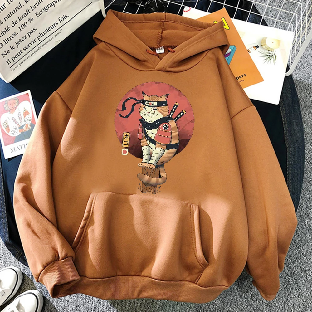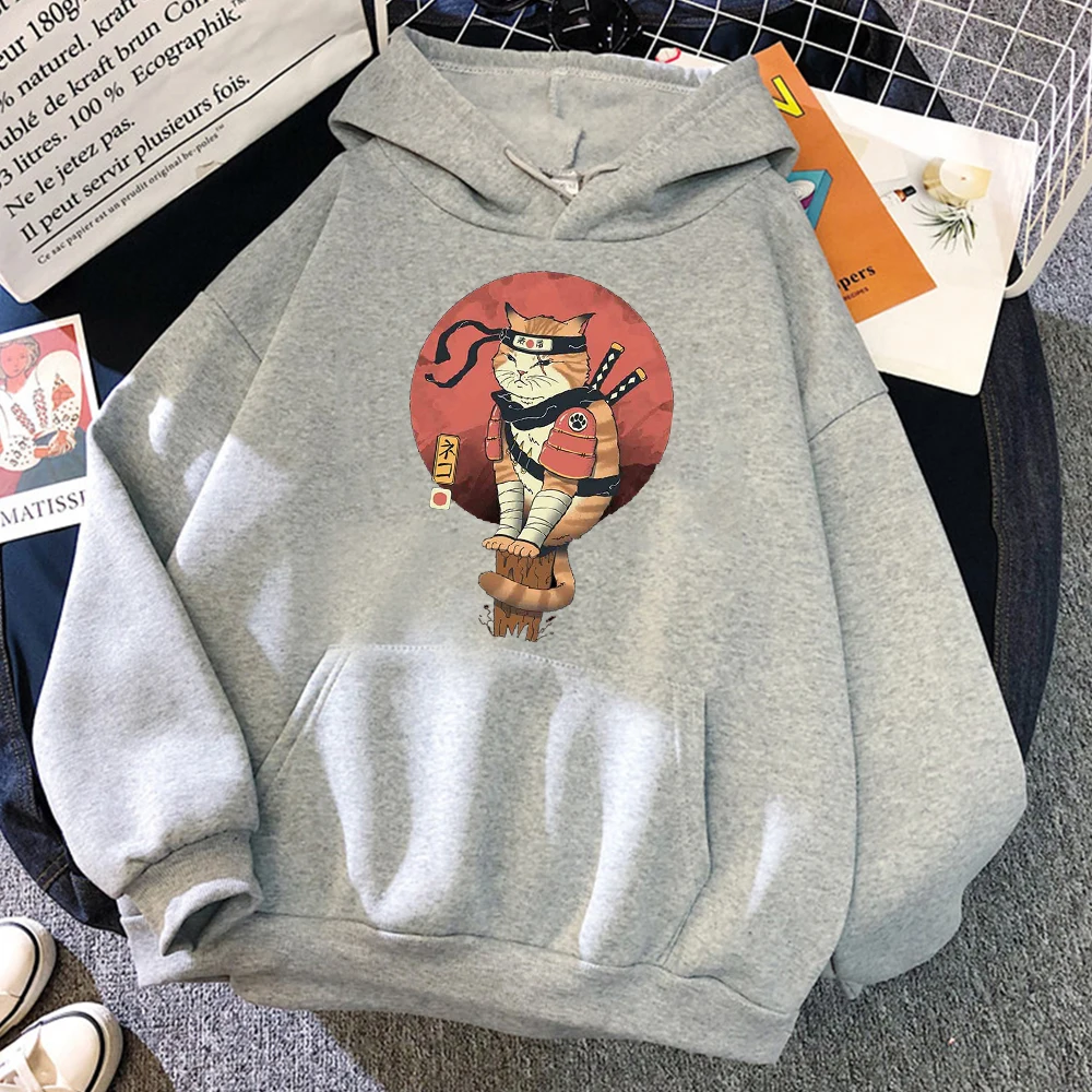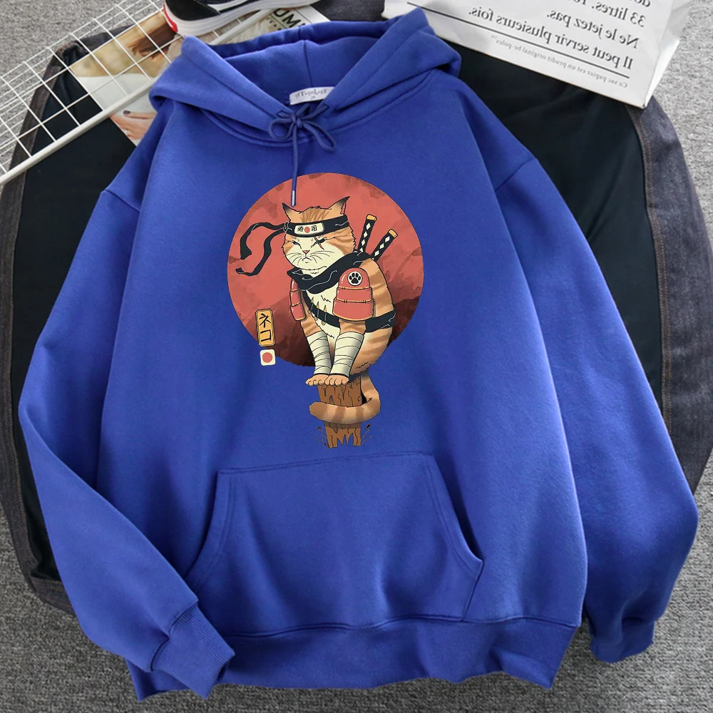 Мужская одежда в японском стиле с принтом кошки Shinobi, флисовая т...