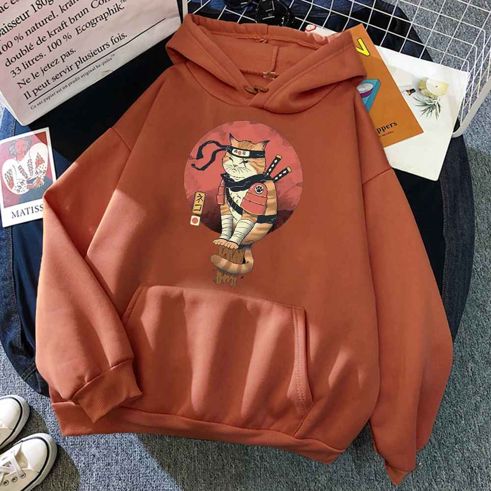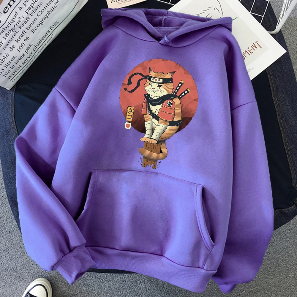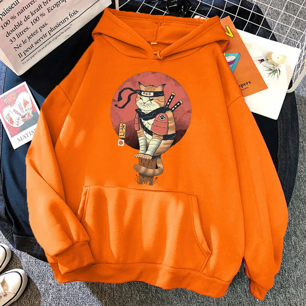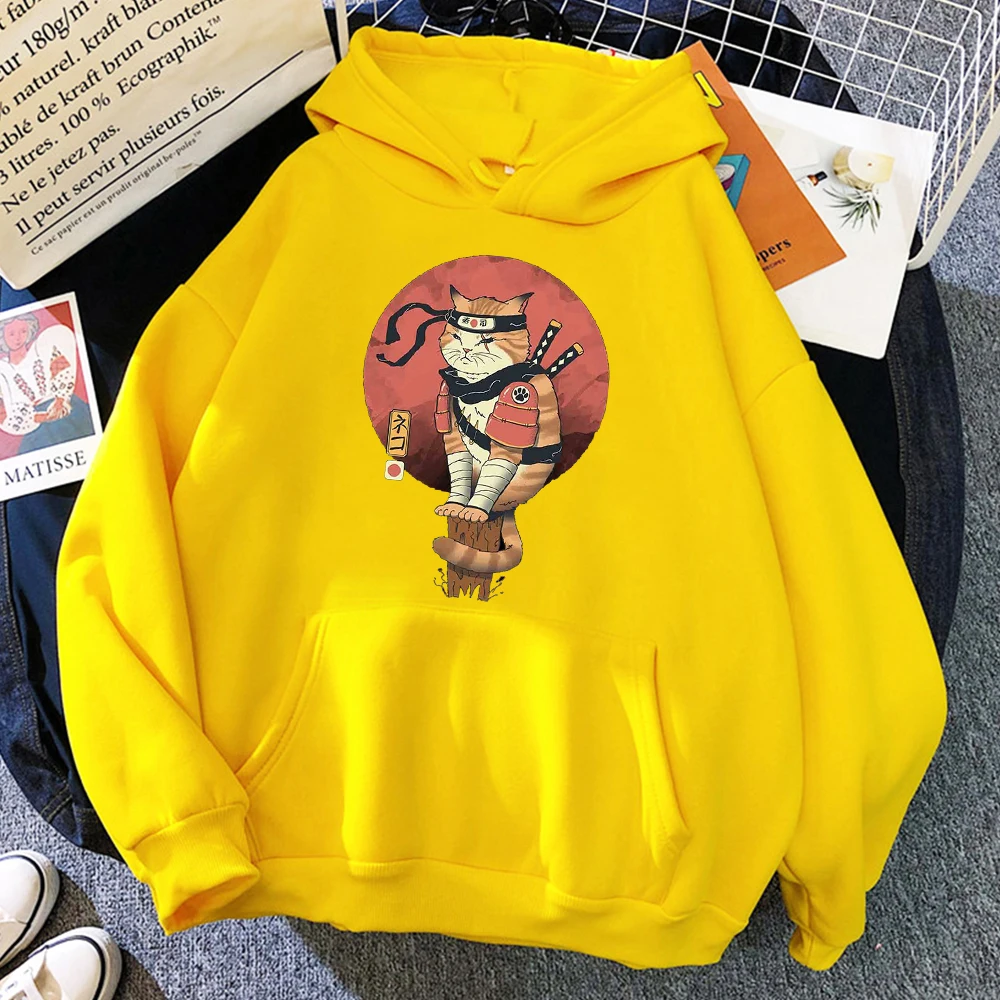 Мужская одежда в японском стиле с принтом кошки Shinobi, флисовая т...