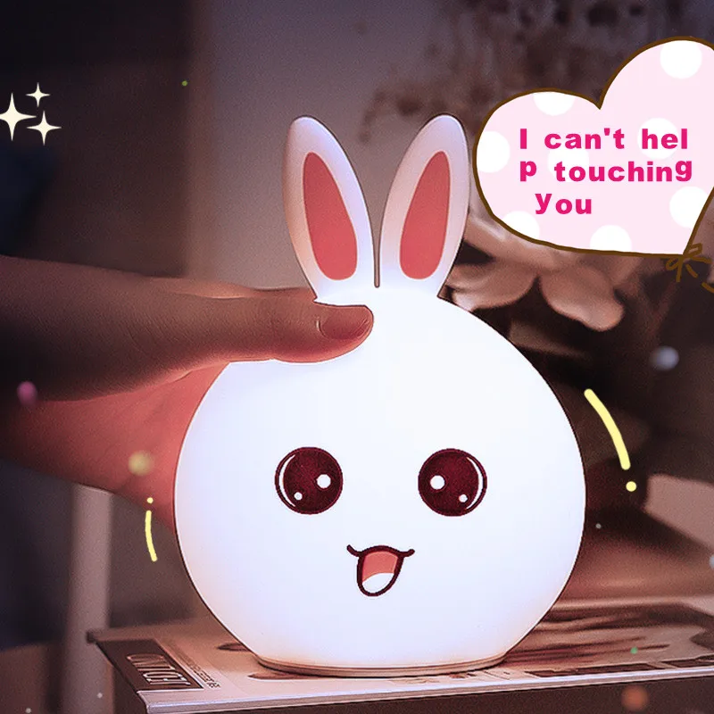 Новый стиль, лампа с кроликом для детей, детская прикроватная многоцветная силиконовая сенсорная Сенсорная лампа, светодиодный ночной Светильник