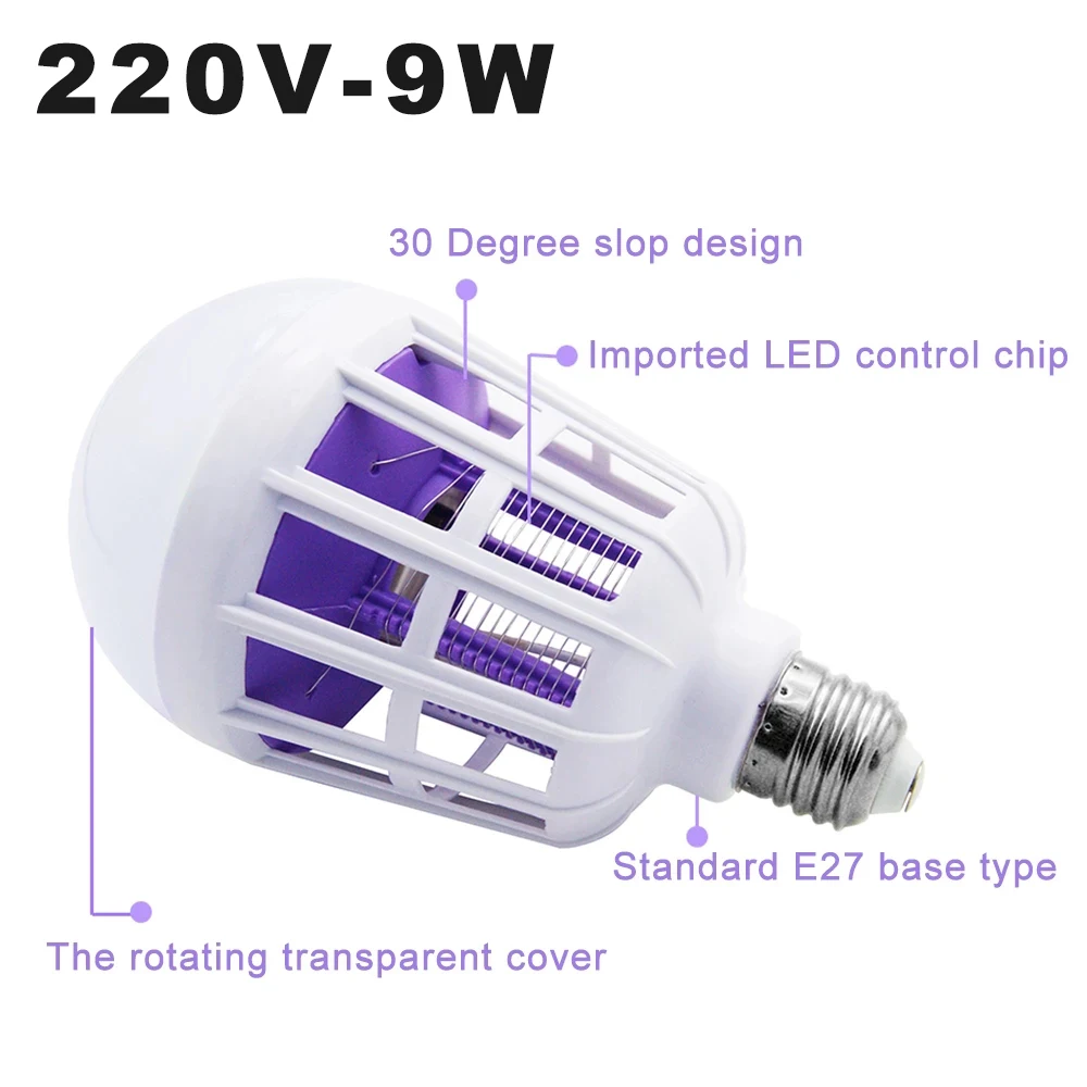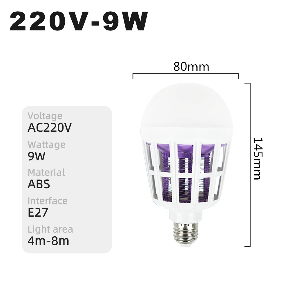 Светодиодсветодиодный УФ-лампа для уничтожения насекомых, 220 В переменного тока, 9 Вт