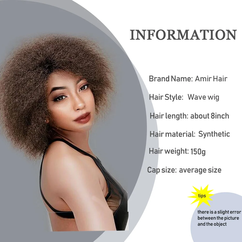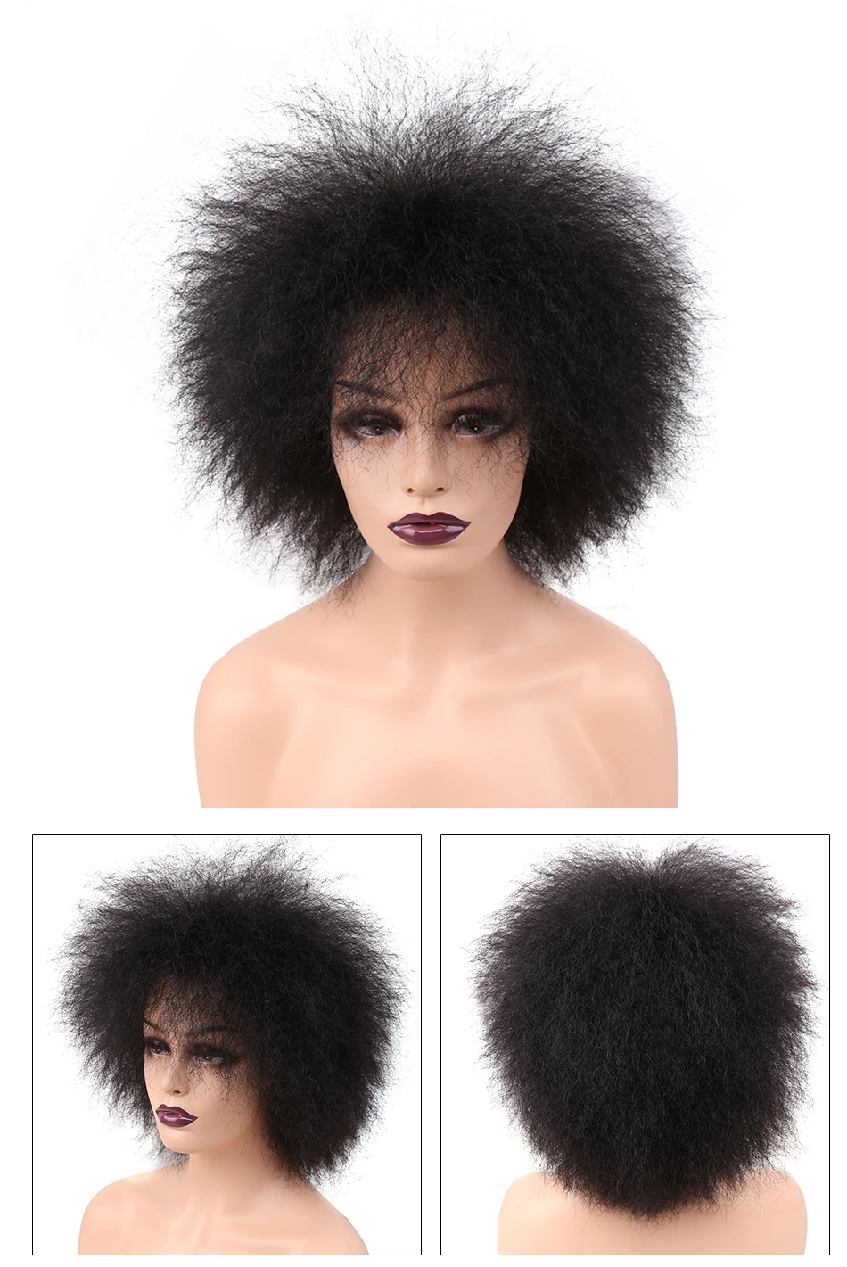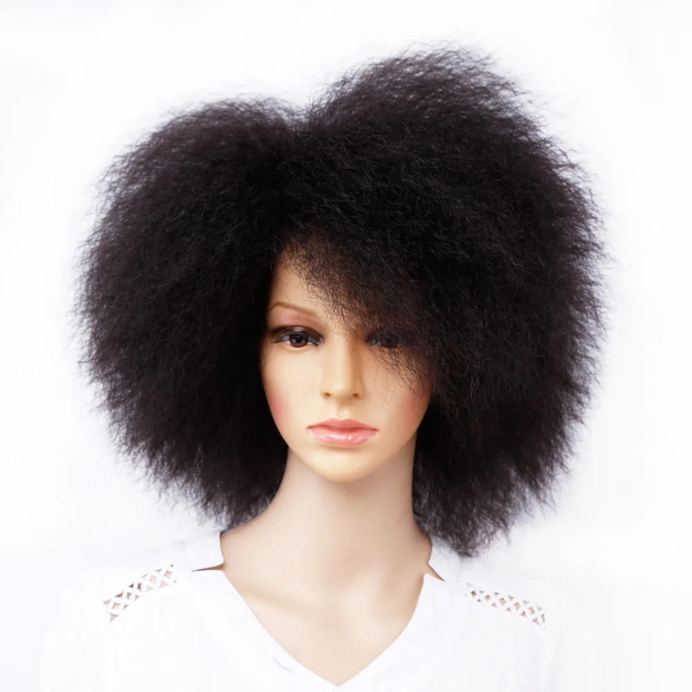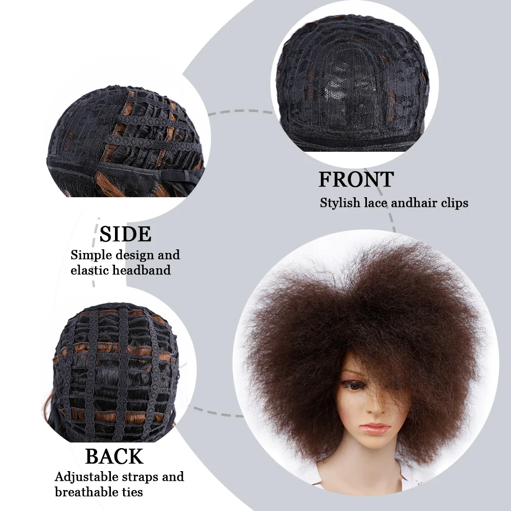 Большой афро-парик для женщин, Африканский, темно-коричневый, черный, красный цвет, Yaki, прямой, короткий парик, синтетические волосы для косплея