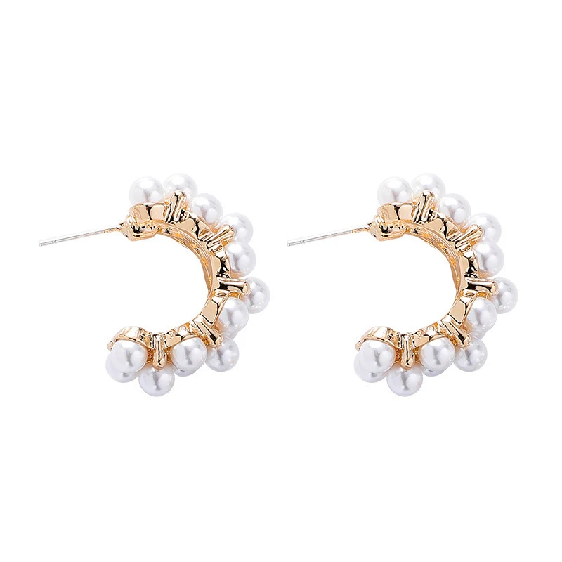 Серьги-кольца женские винтажные с искусственным жемчугом и искусственным жемчугом