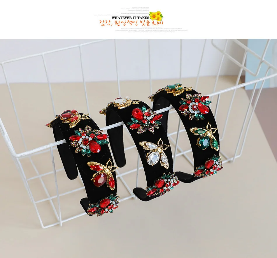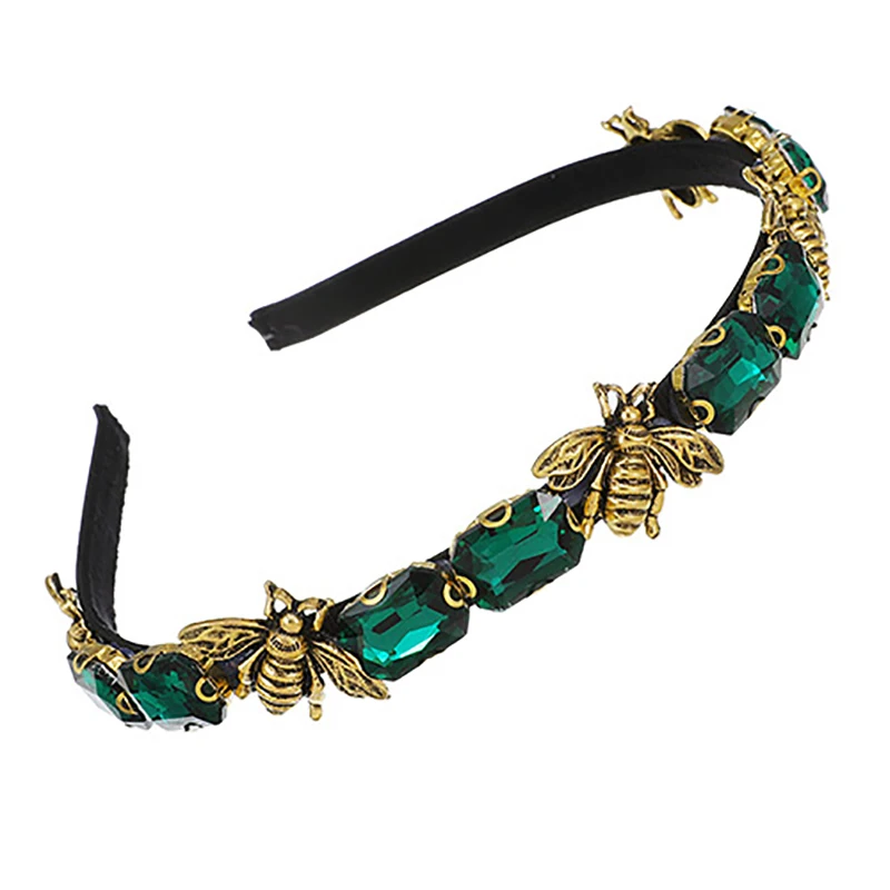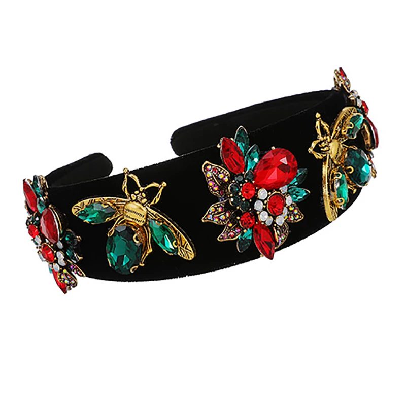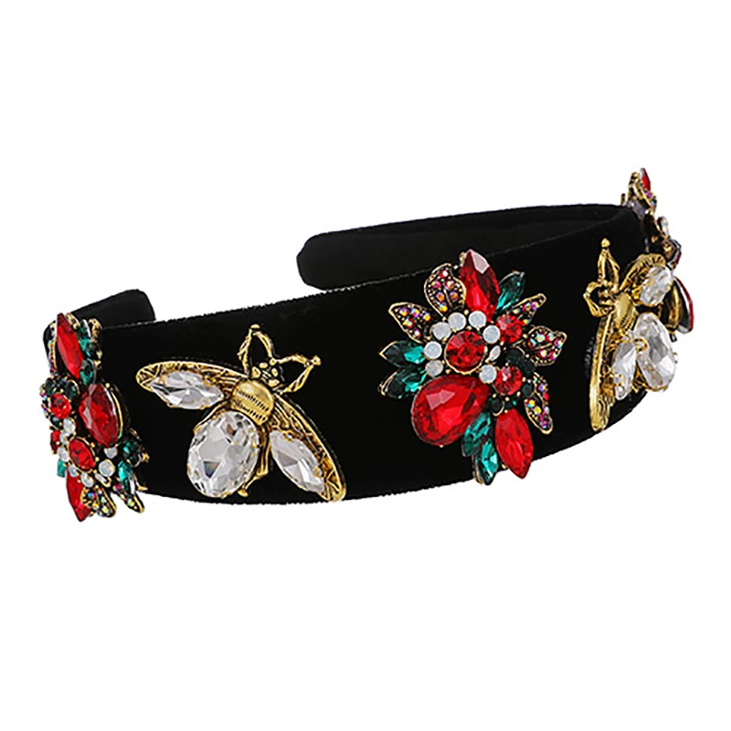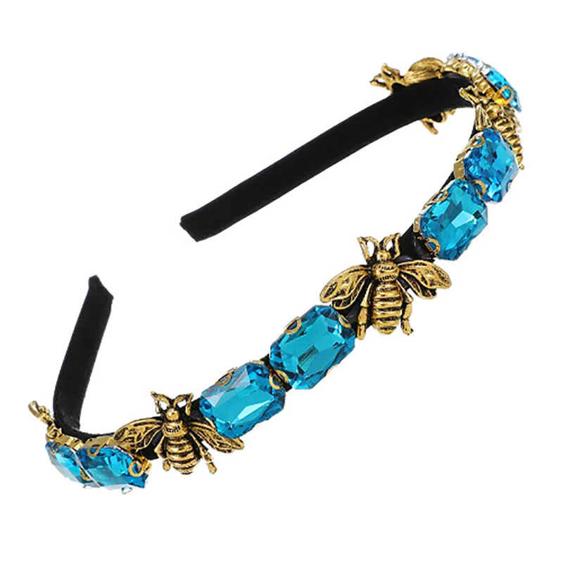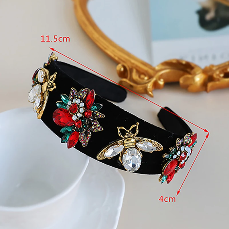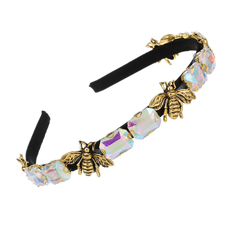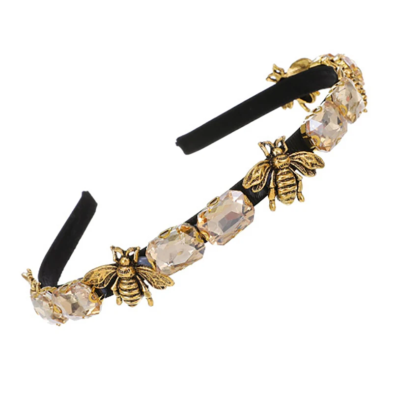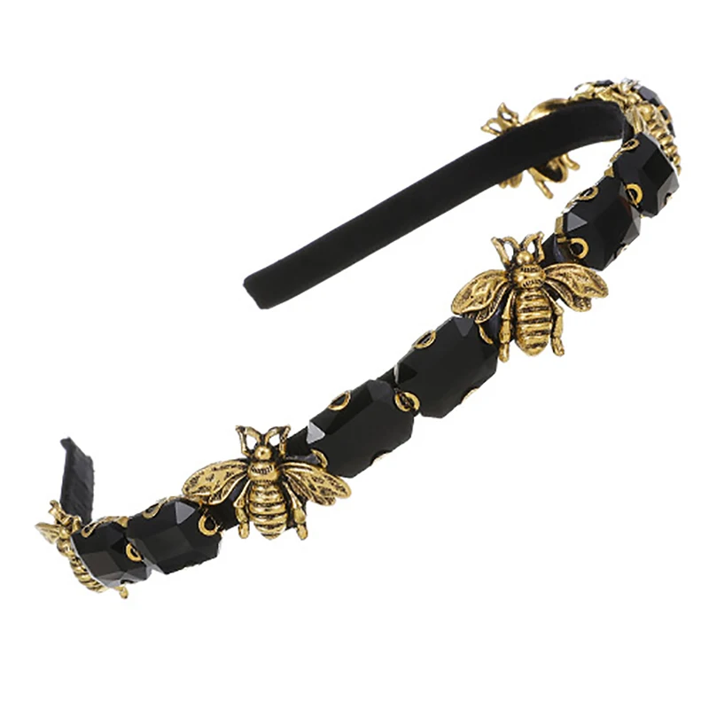 ZHINI новые корейские пчелы черные тканевые повязки для волос женские стразы из сплава Роскошные повязки головной убор эффектные Свадебные украшения