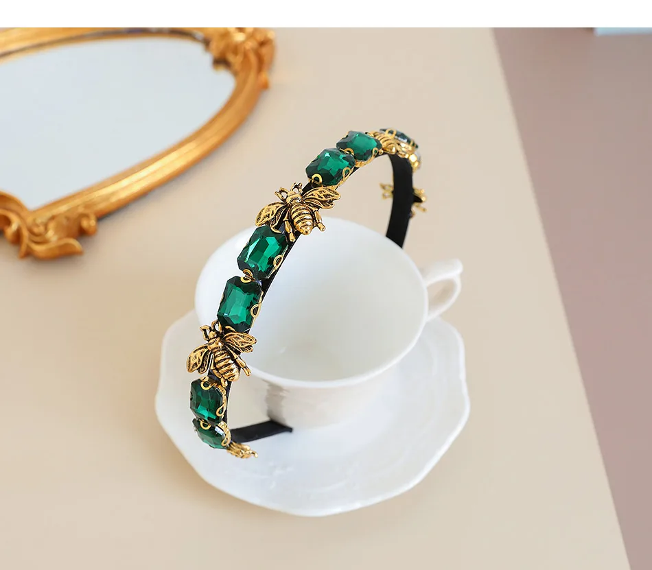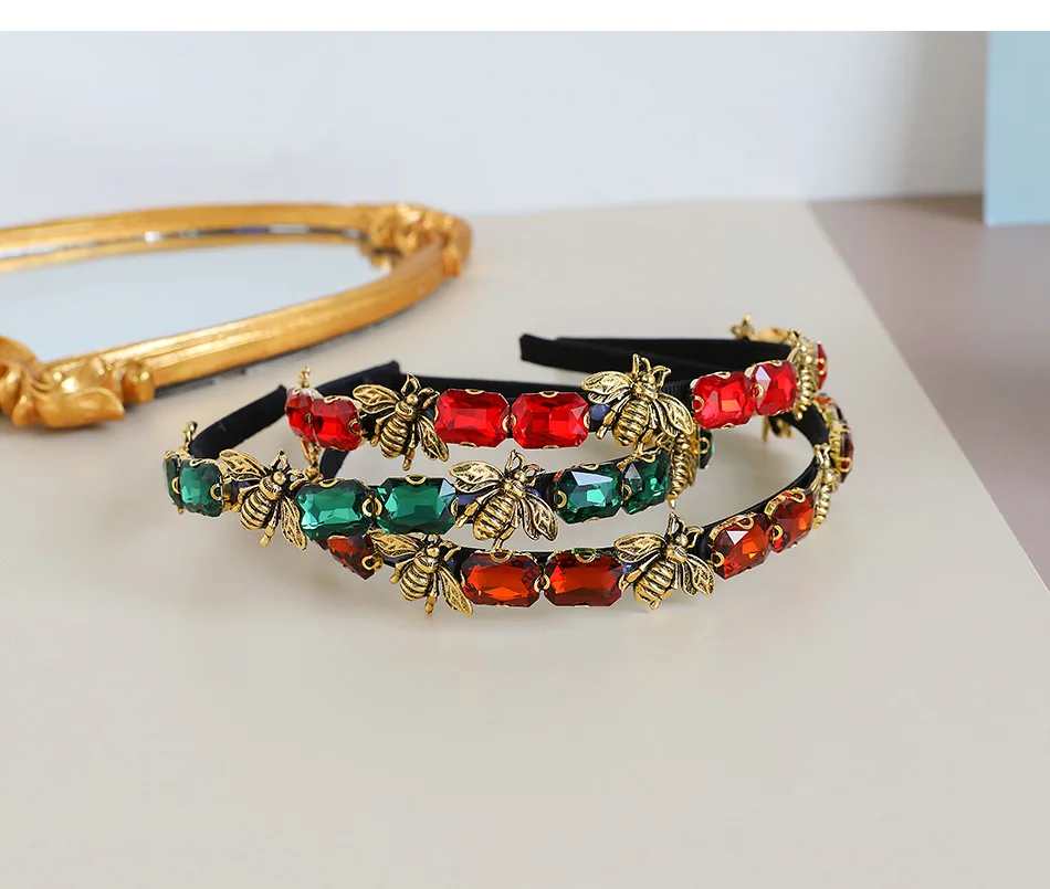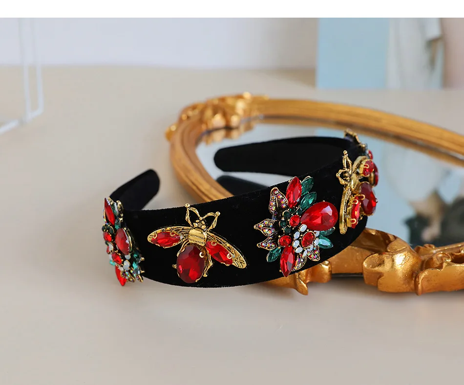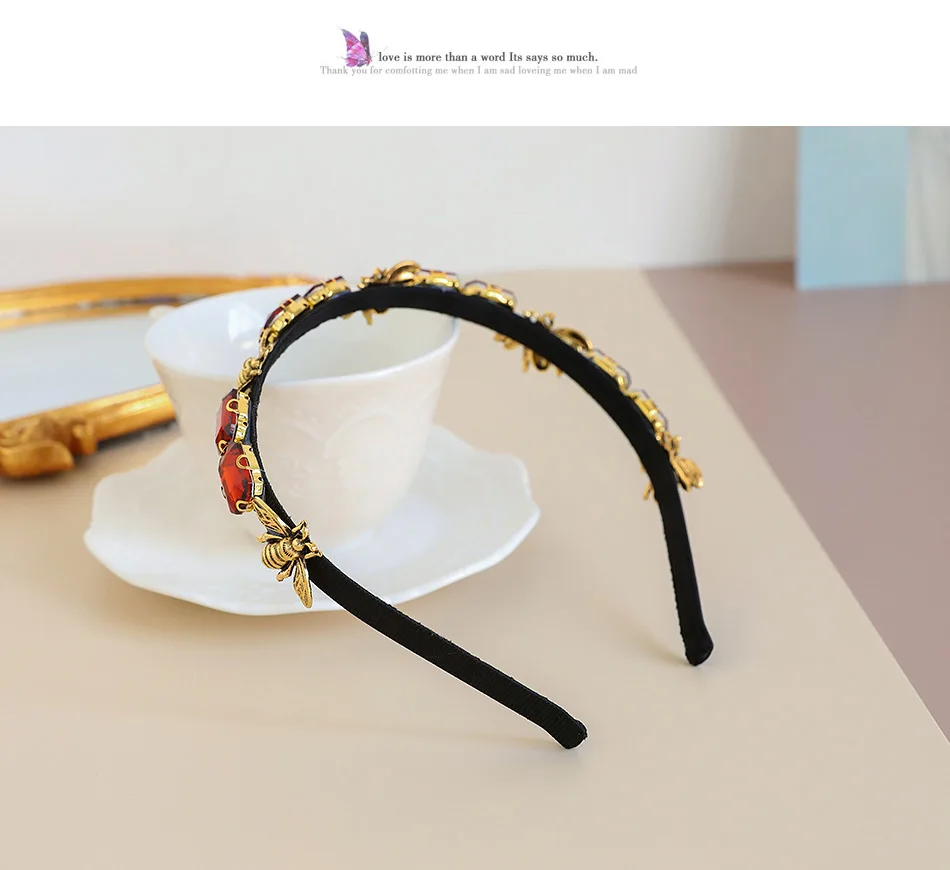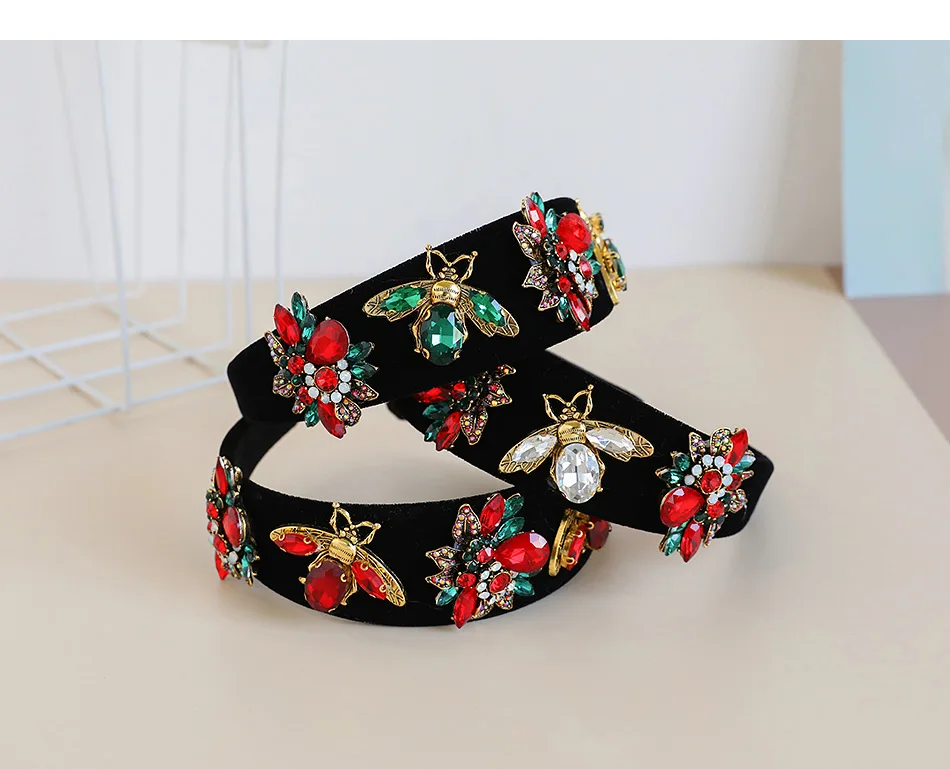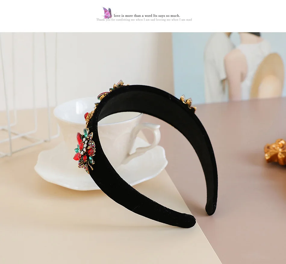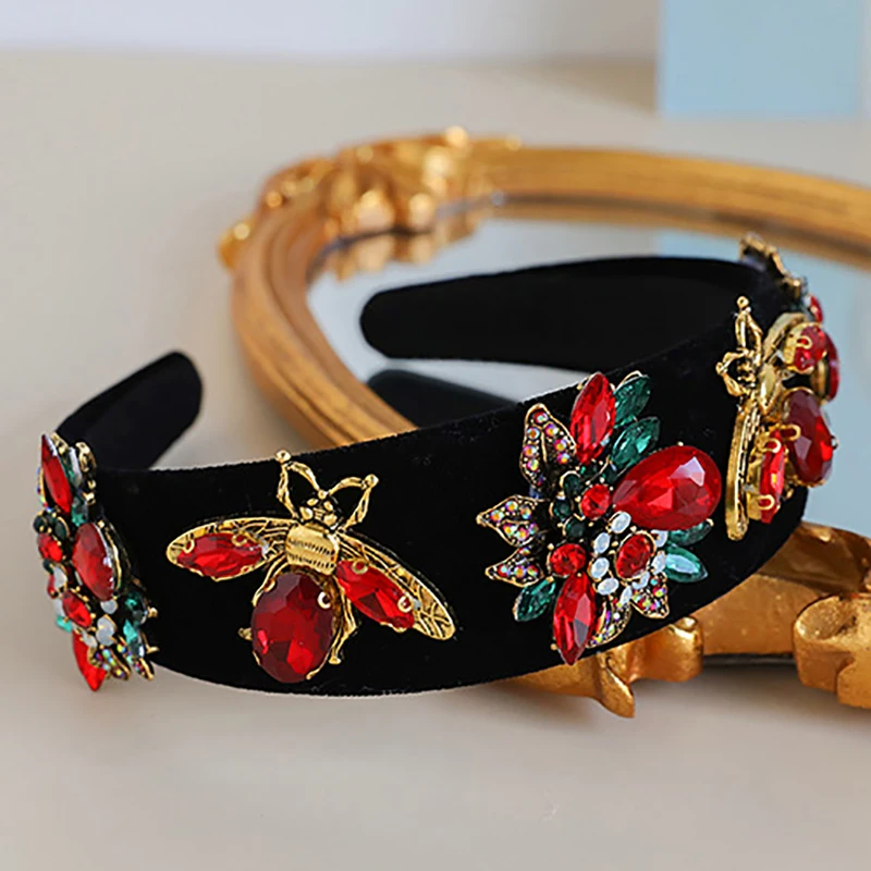 ZHINI новые корейские пчелы черные тканевые повязки для волос женские стразы из сплава Роскошные повязки головной убор эффектные Свадебные украшения