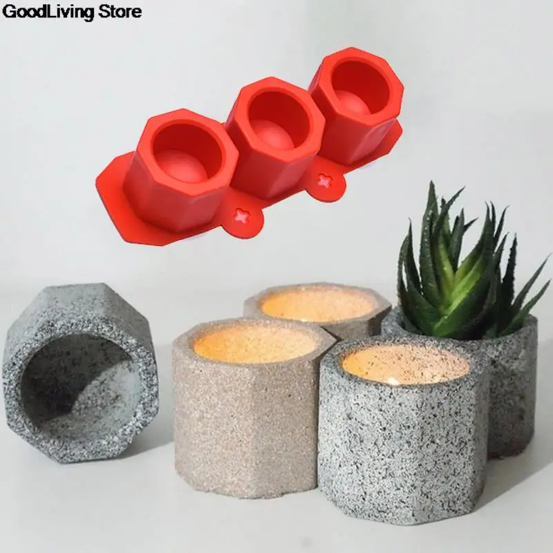 1 шт., красная восьмиугольная силиконовая форма для бетона, сетчатый цветочный горшок, подсвечник, форма для керамической глины, DIY ремесла, форма для DIY цветочного горшка