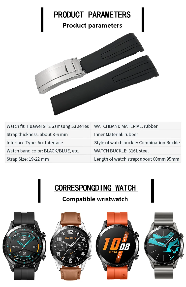 Силиконовый ремешок для часов Huawei GT2, Samsung S3, Rolex, 20 мм, 22 мм